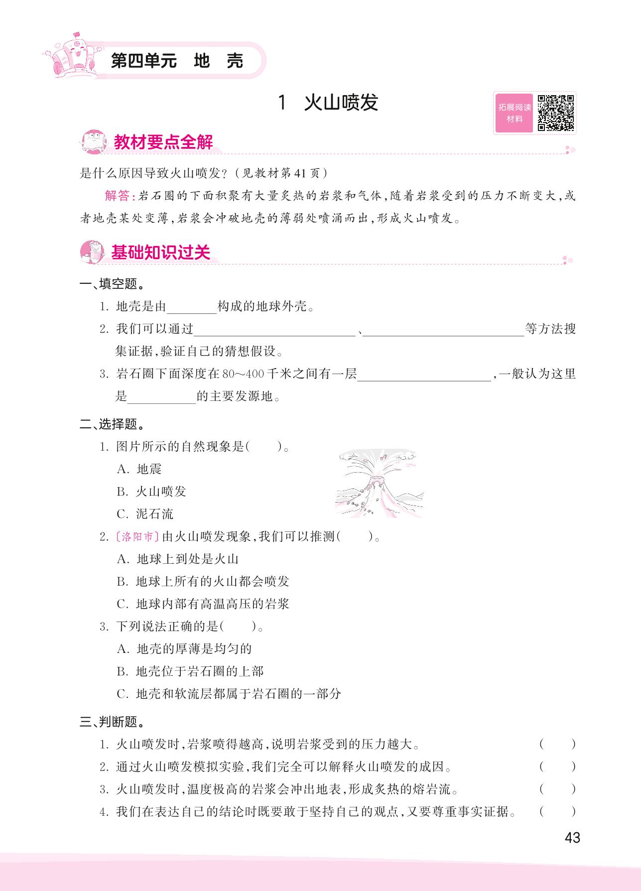 2023上册五年级科学大象版 第四单元 地壳——1 火山喷发