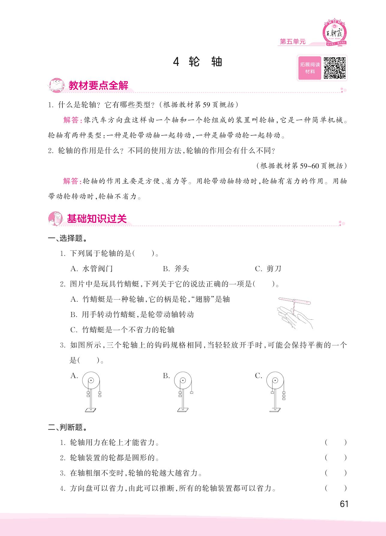 2023上册五年级科学大象版 第五单元 小小机械师——4 轮轴
