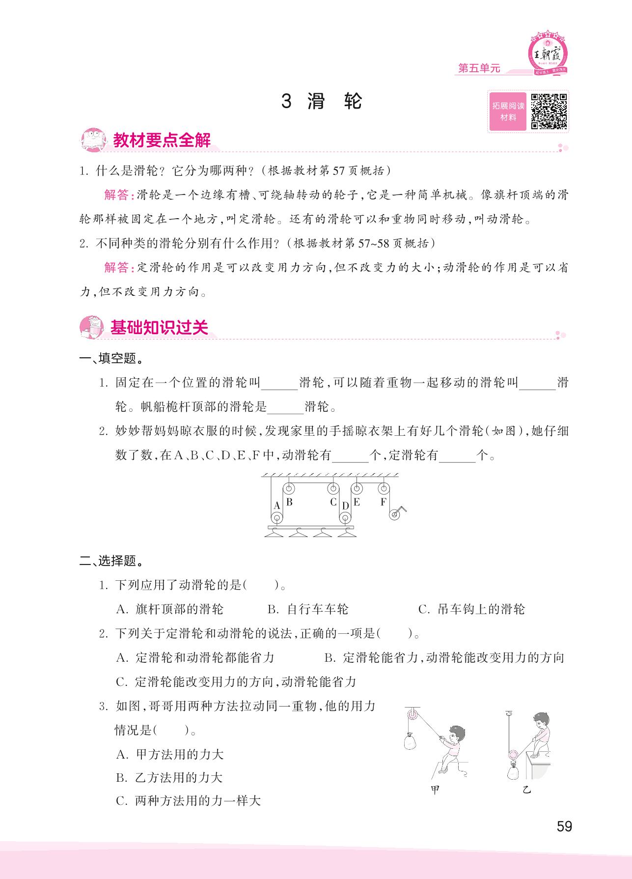 2023上册五年级科学大象版 第五单元 小小机械师——3 滑轮