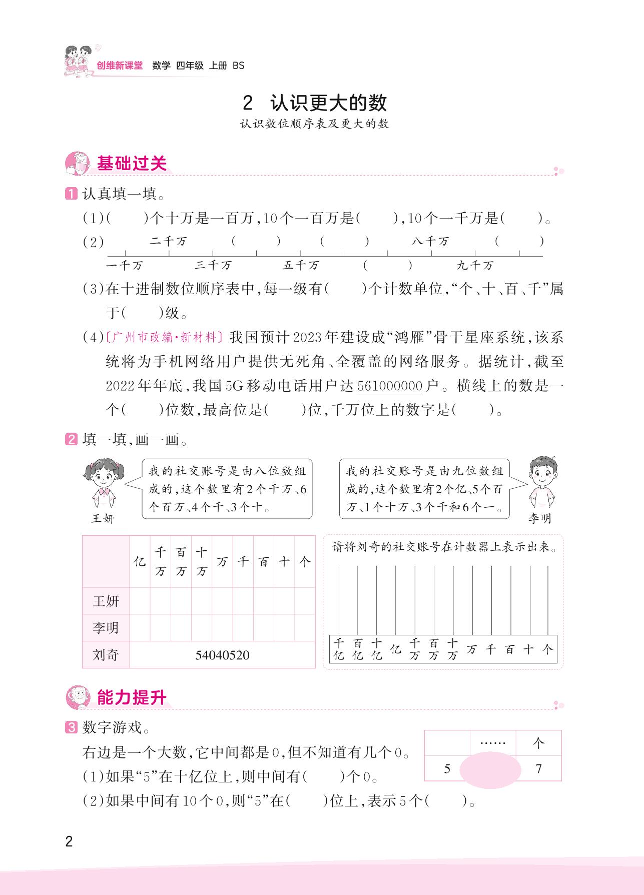 2023上册四年级数学北师版 一 认识更大的数——2 认识更大的数