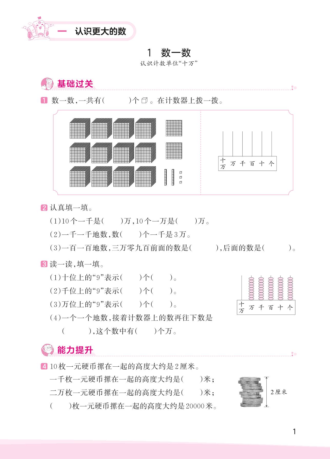 2023上册四年级数学北师版 一 认识更大的数——1 数一数