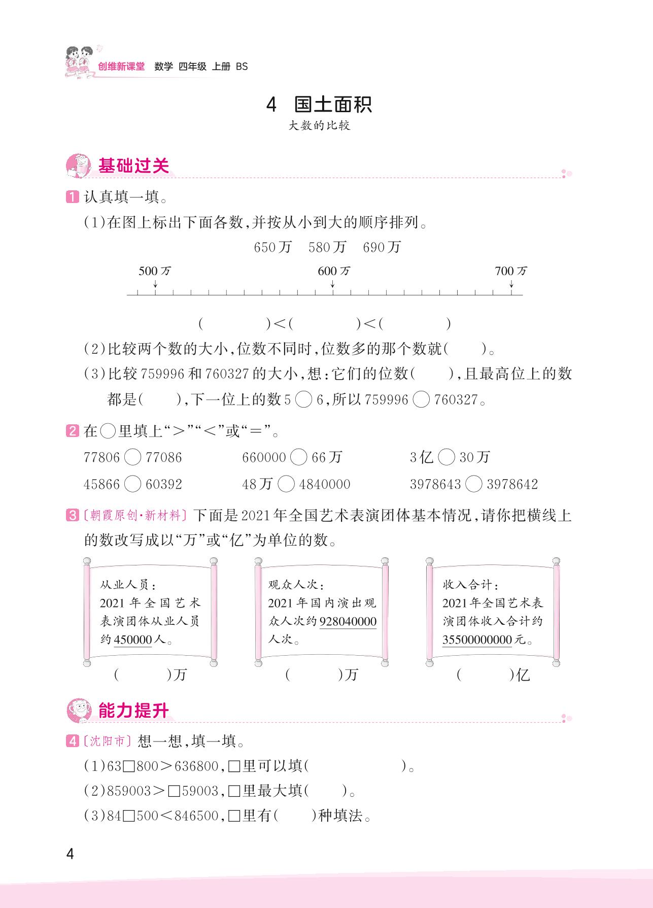 2023上册四年级数学北师版 一 认识更大的数——4 国土面积