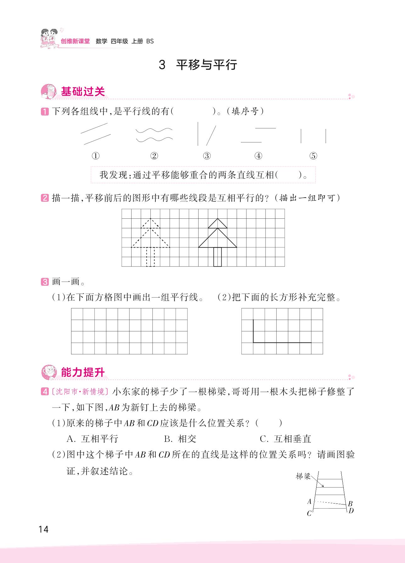 2023上册四年级数学北师版 二 线与角——3 平移与平行
