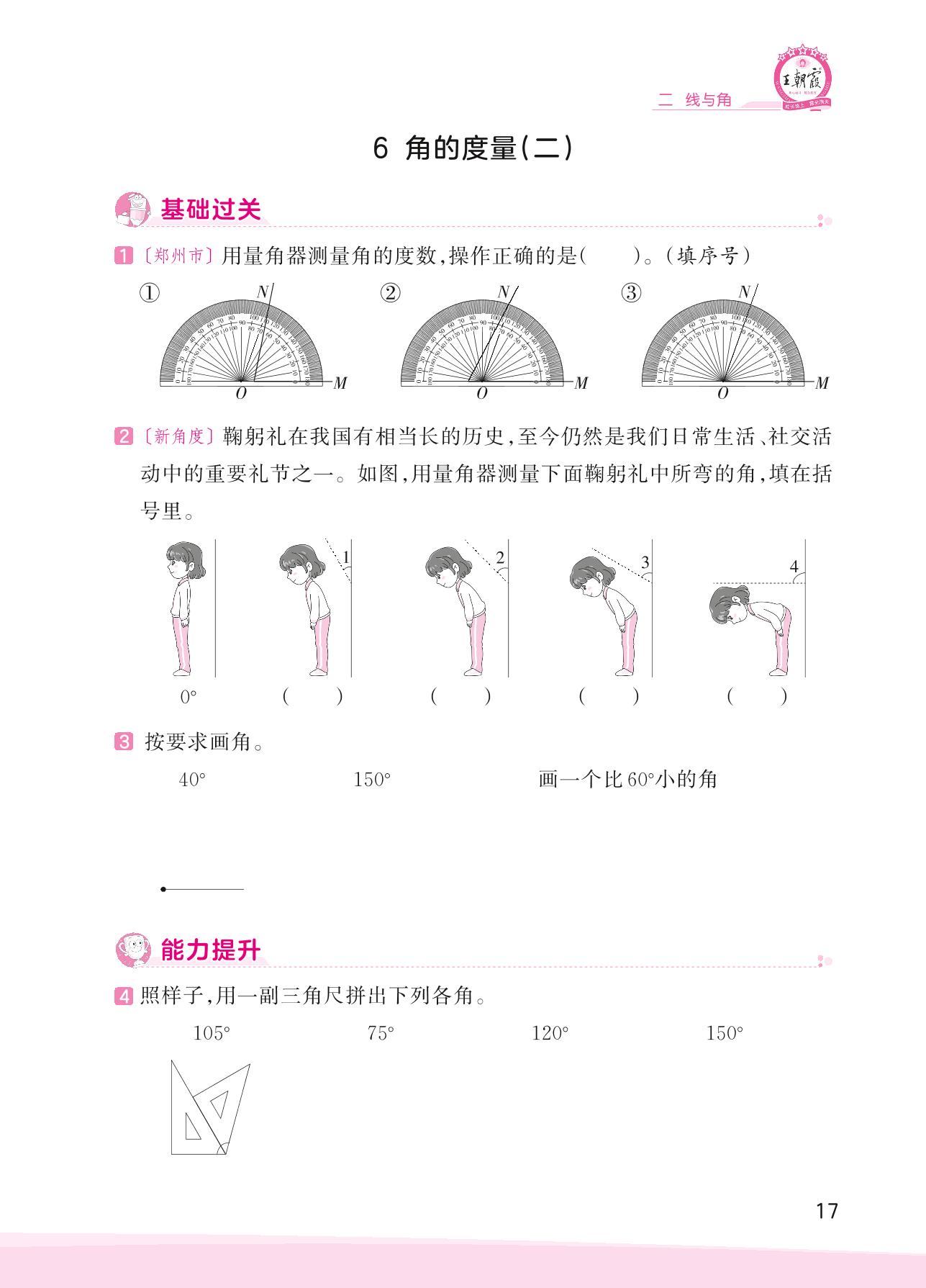2023上册四年级数学北师版 二 线与角——6 角的度量(二)