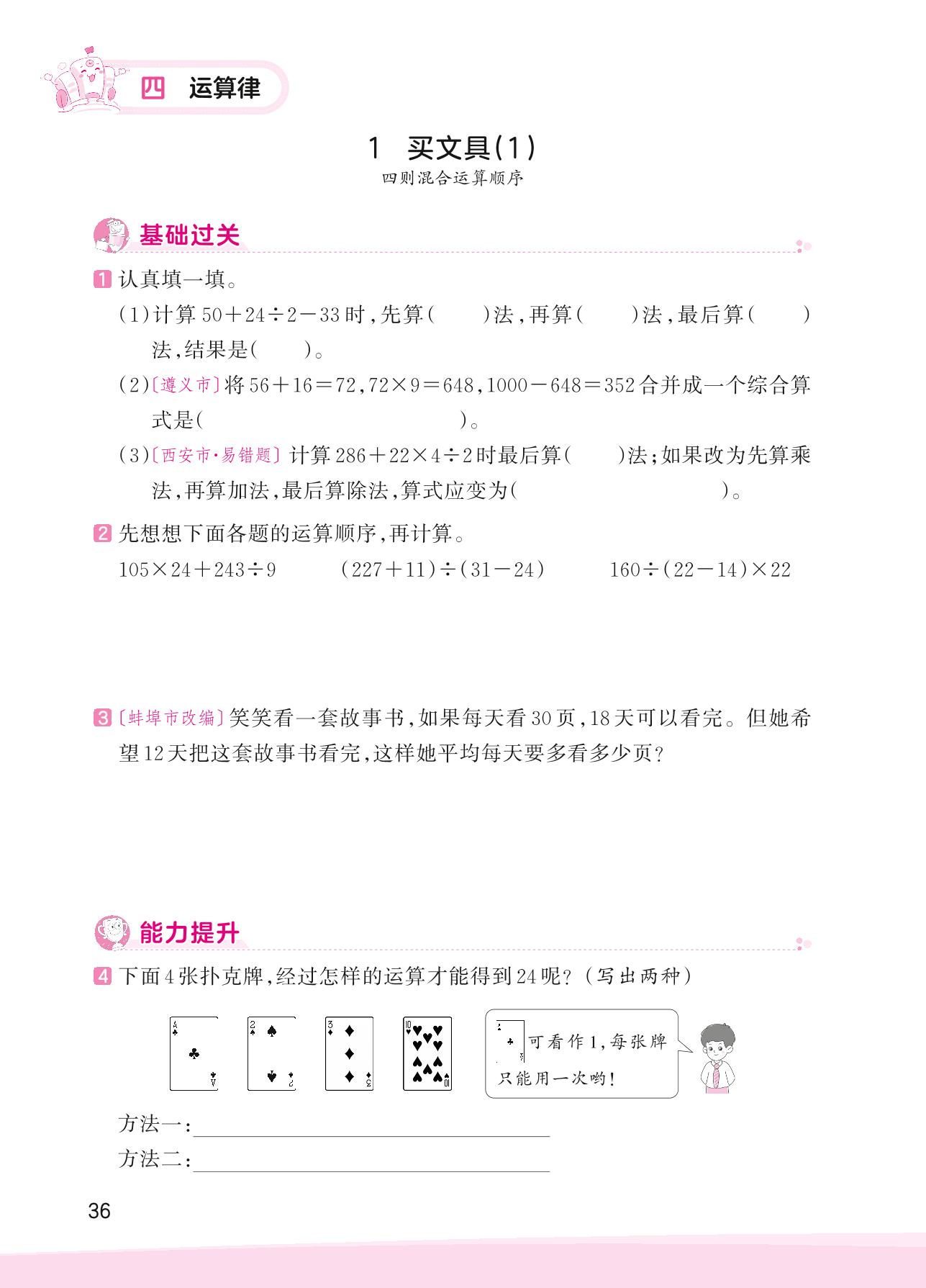 2023上册四年级数学北师版 四 运算律——1 买文具(1)