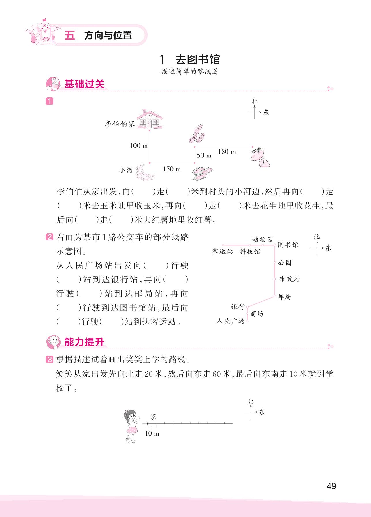 2023上册四年级数学北师版 五 方向与位置——1 去图书馆