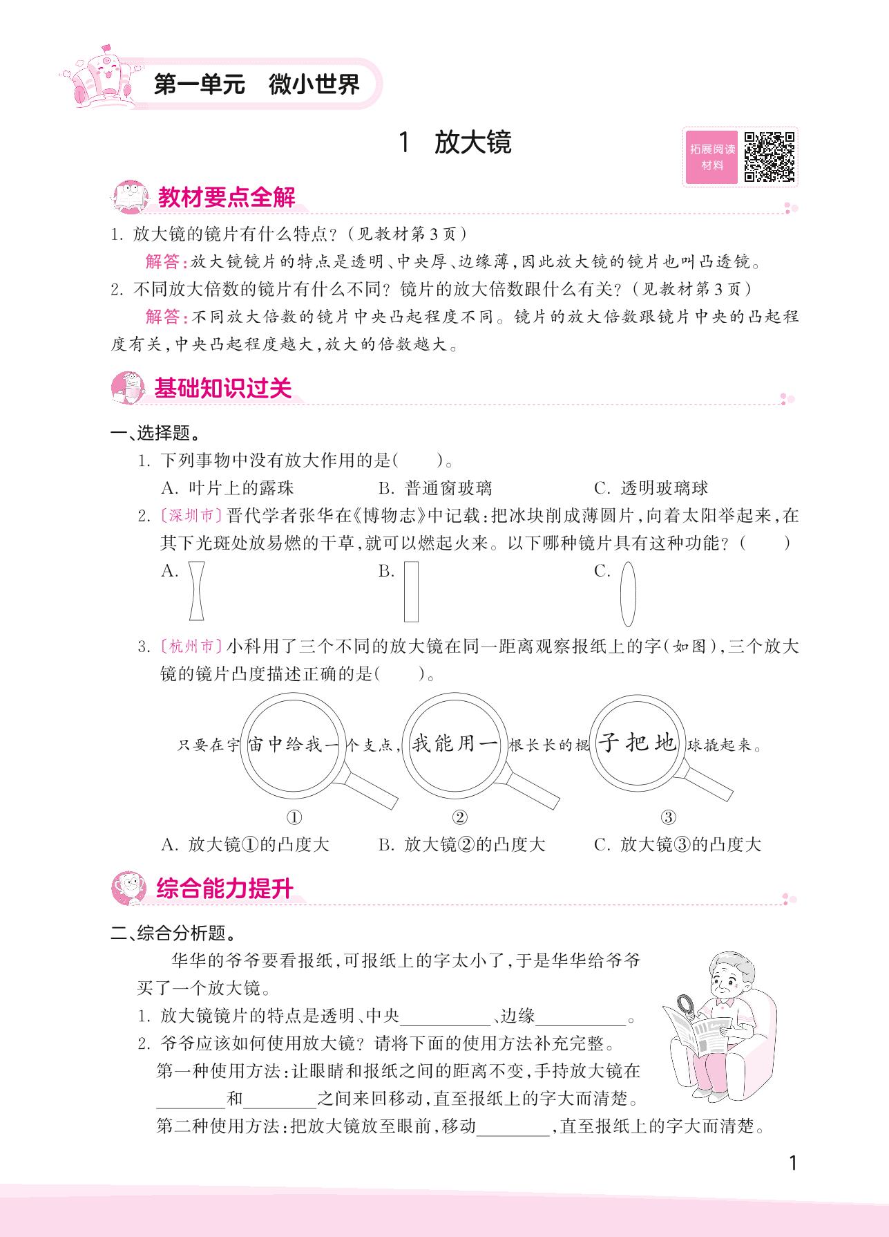 2023上册六年级科学教科版 第一单元 微小世界——1 放大镜