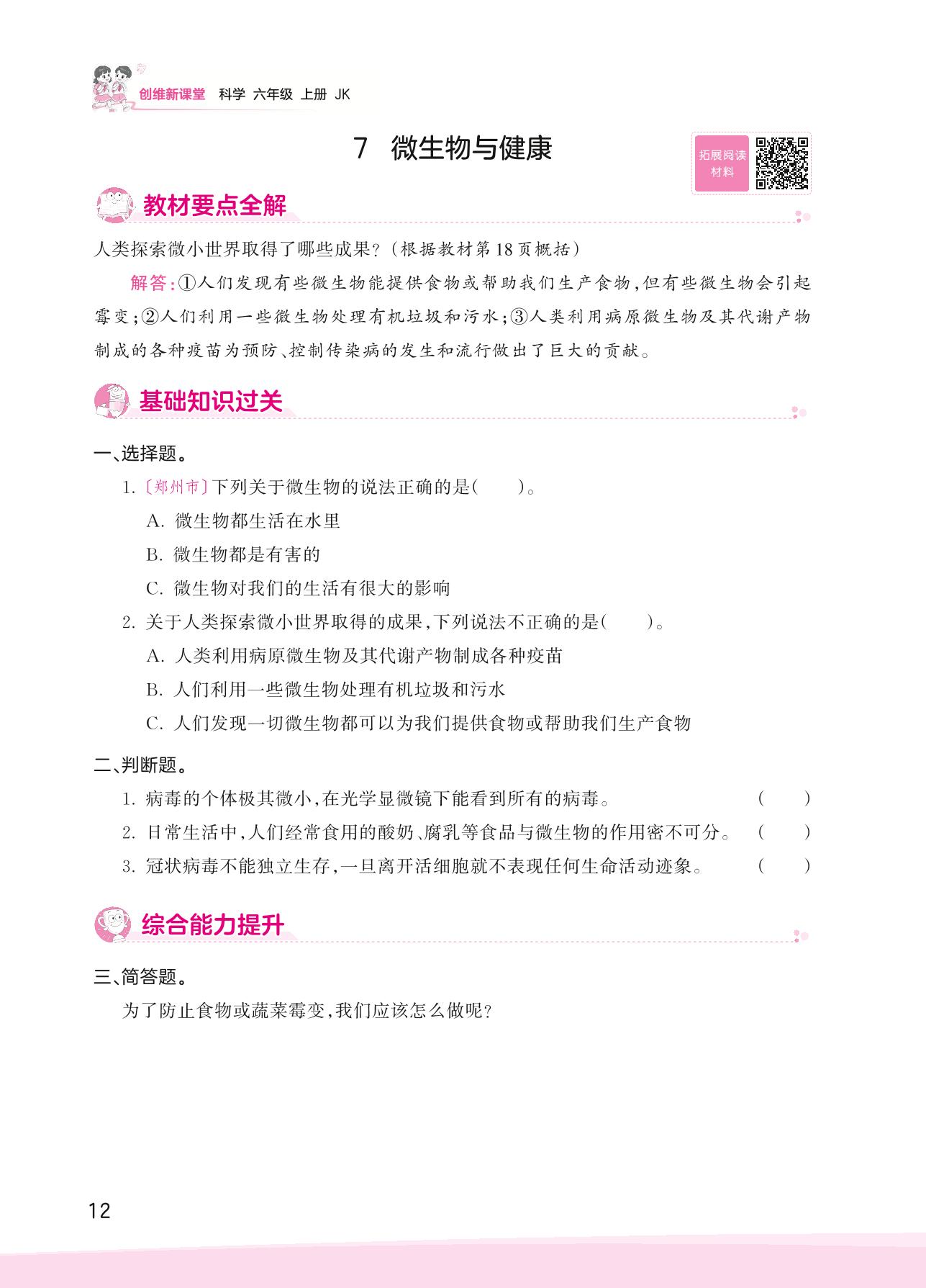2023上册六年级科学教科版 第一单元 微小世界——7 微生物与健康