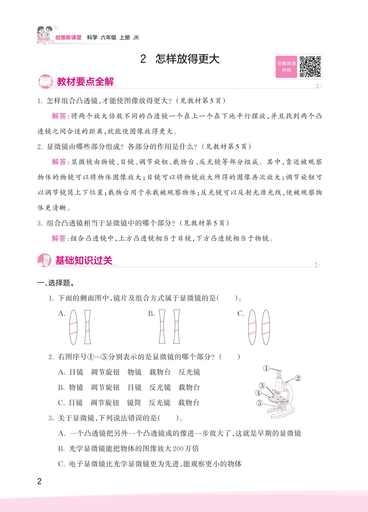 2023上册六年级科学教科版 第一单元 微小世界——2 怎样放得更大