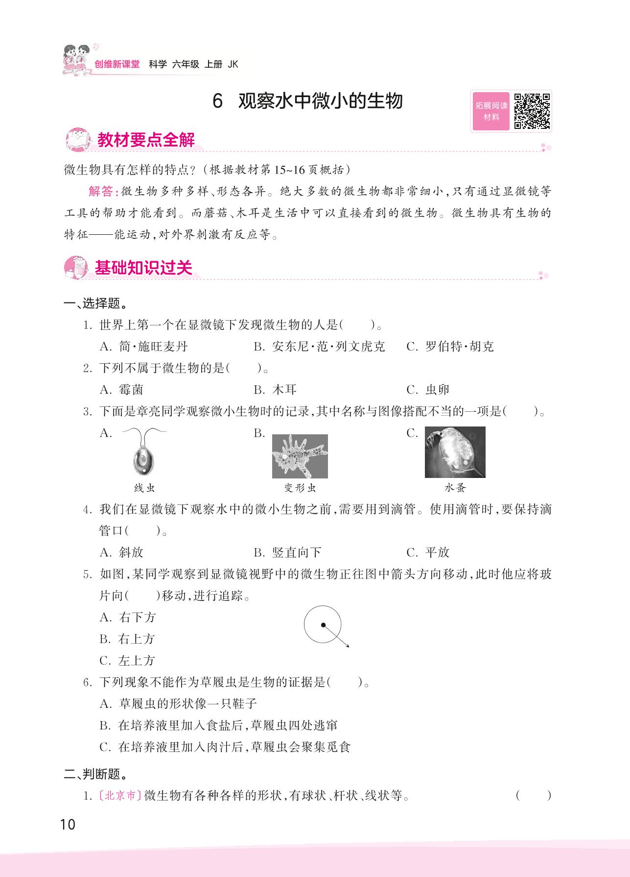 2023上册六年级科学教科版 第一单元 微小世界——6 观察水中微小的生物