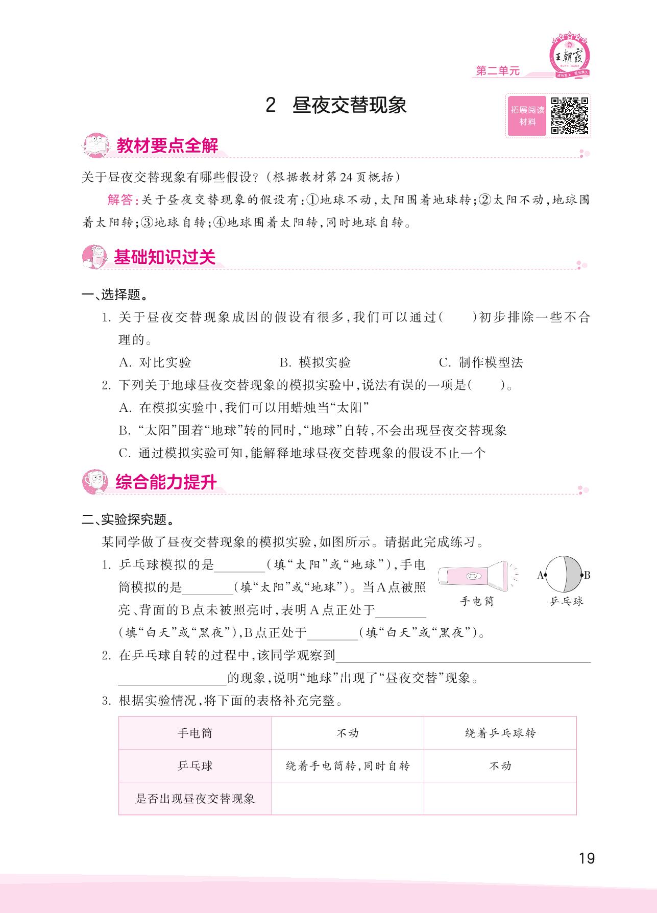 2023上册六年级科学教科版 第二单元 地球的运动——2 昼夜交替现象
