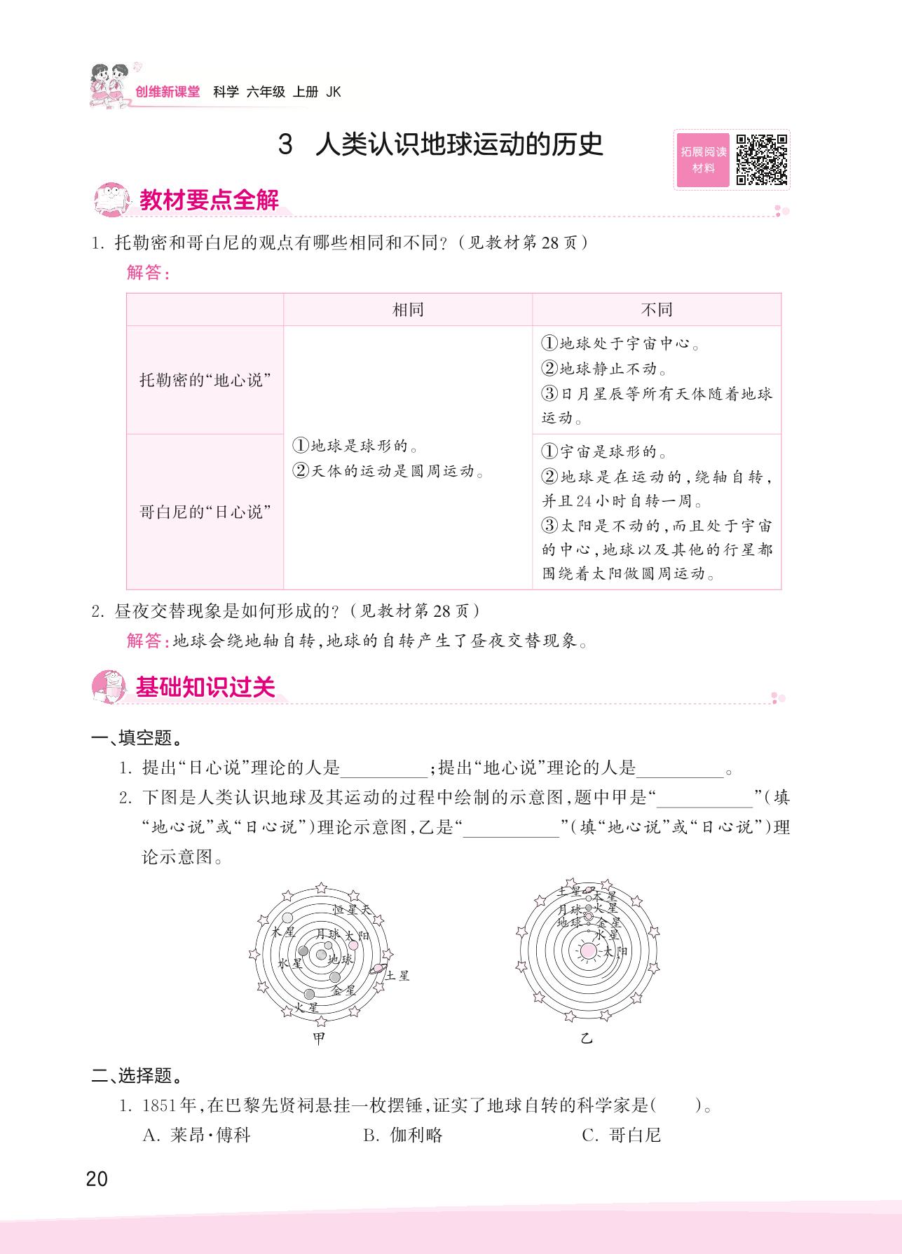 2023上册六年级科学教科版 第二单元 地球的运动——3 人类认识地球运动的历史