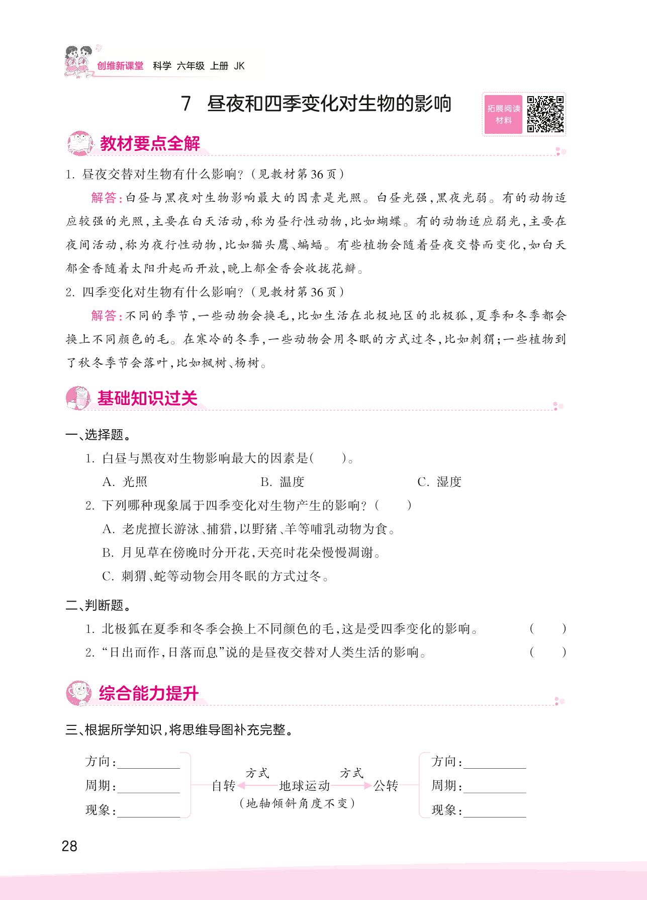 2023上册六年级科学教科版 第二单元 地球的运动——7 昼夜和四季变化对生物的影响