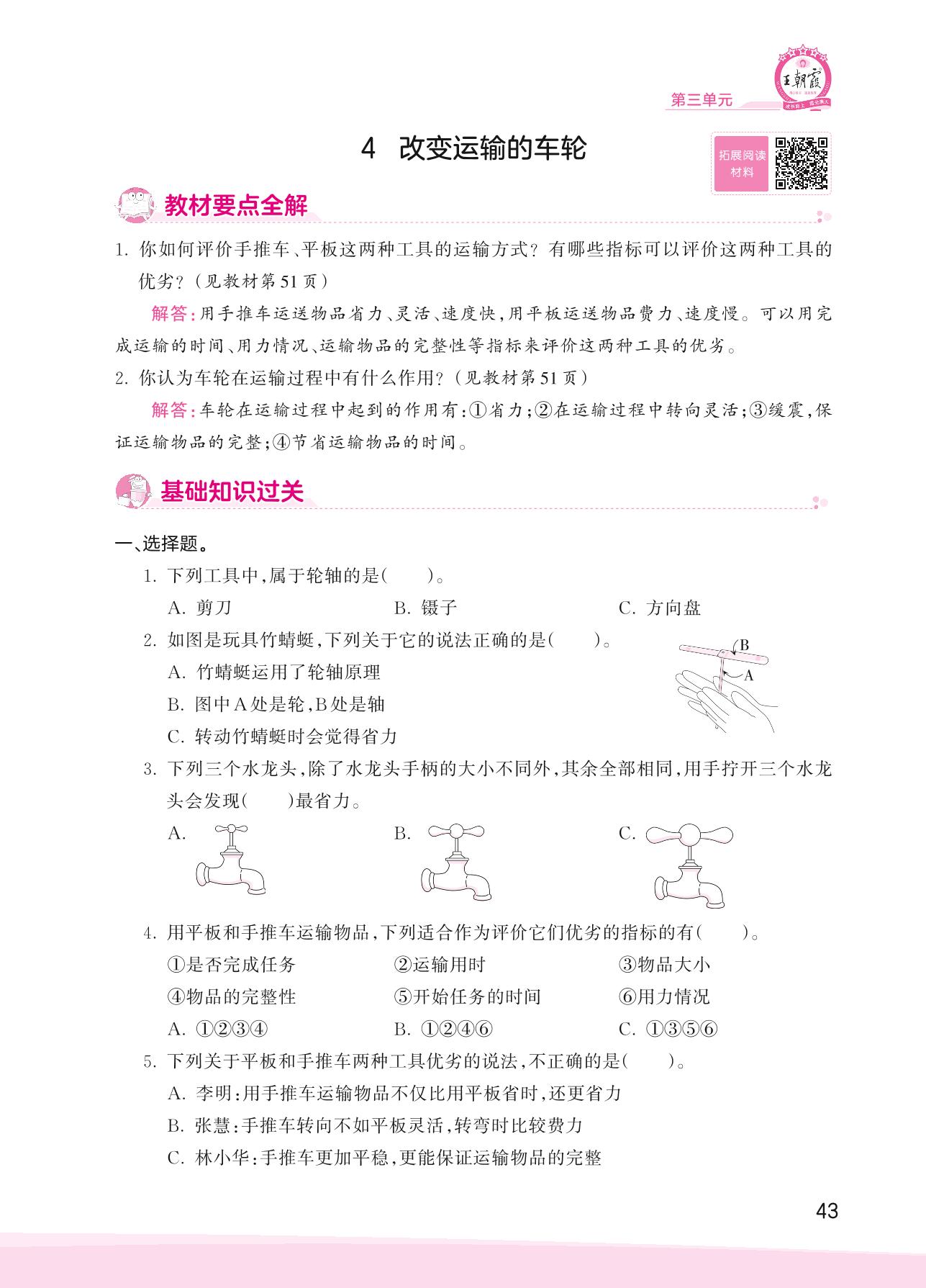 2023上册六年级科学教科版 第三单元 工具与技术——4 改变运输的车轮