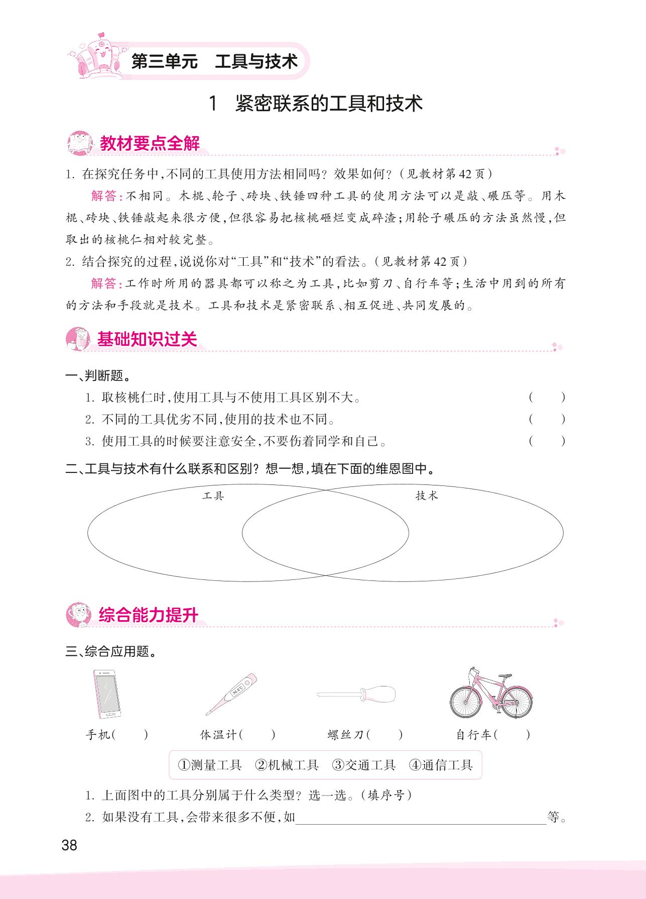 2023上册六年级科学教科版 第三单元 工具与技术——1 紧密联系的工具和技术