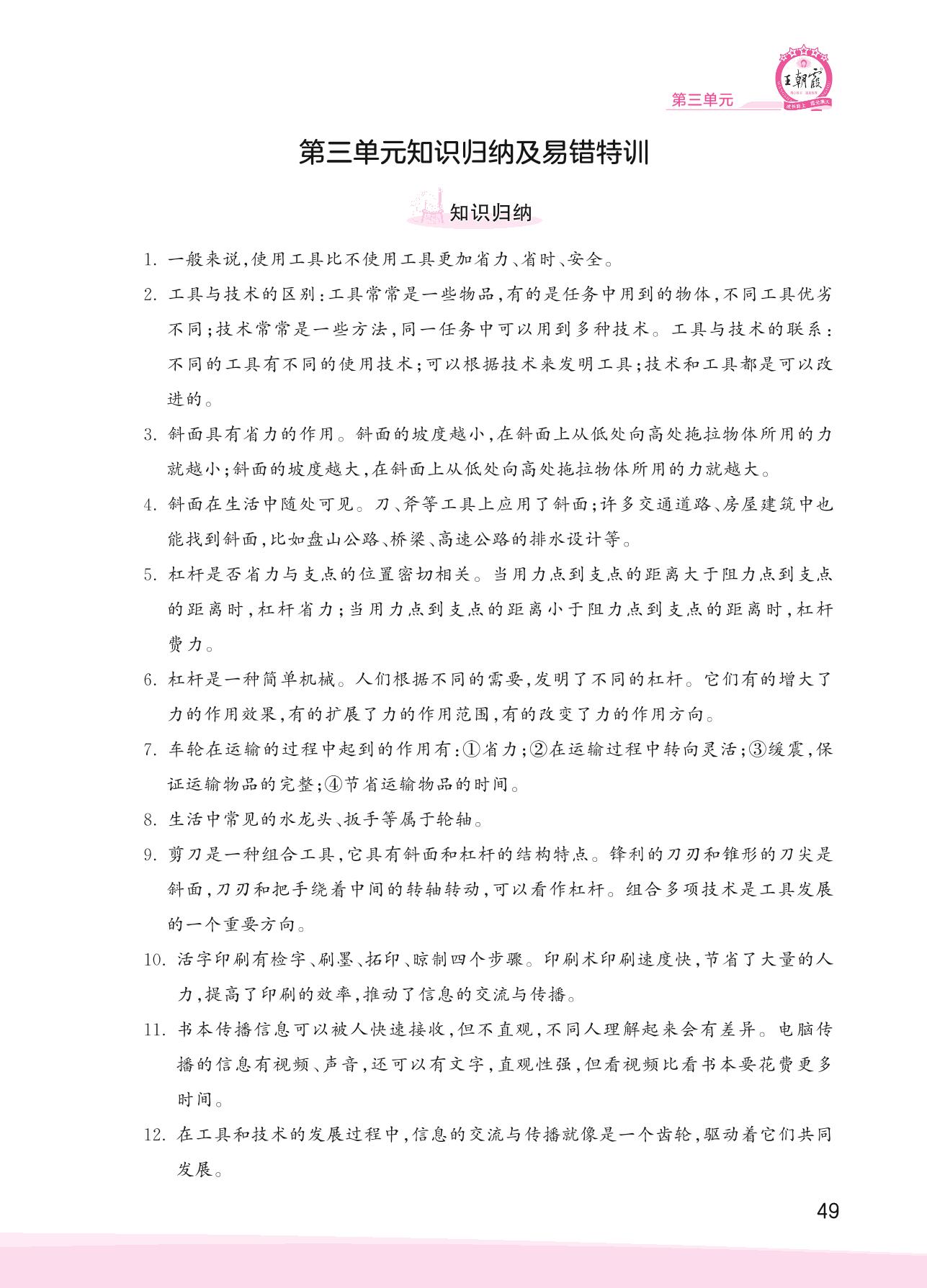 2023上册六年级科学教科版 第三单元知识归纳及易错特训