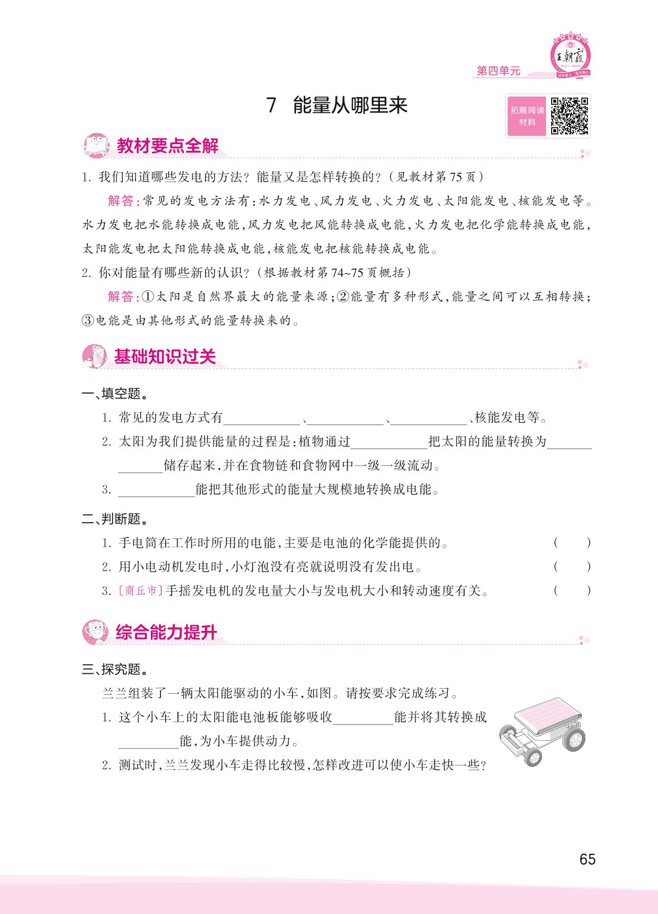 2023上册六年级科学教科版 第四单元 能量——7 能量从哪里来
