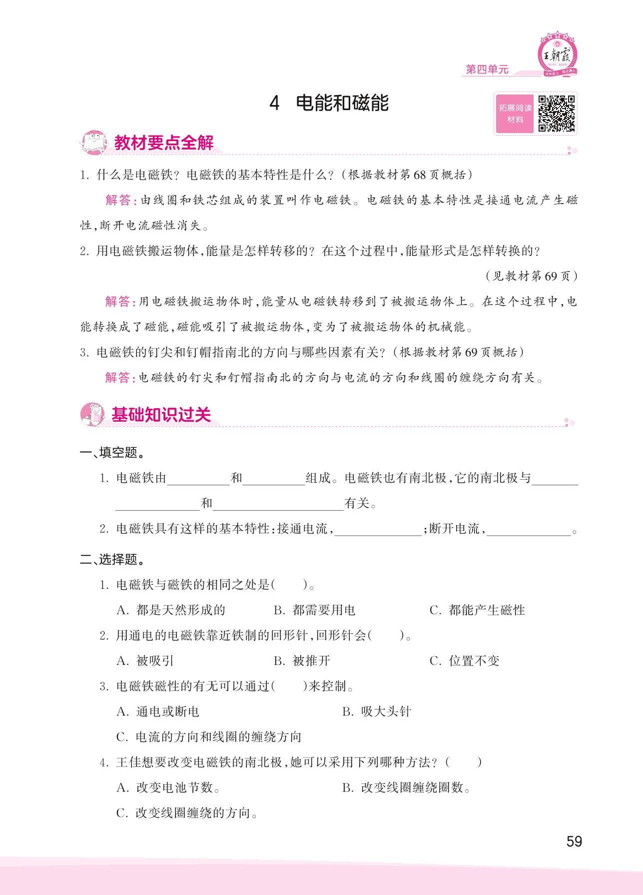 2023上册六年级科学教科版 第四单元 能量——4 电能和磁能