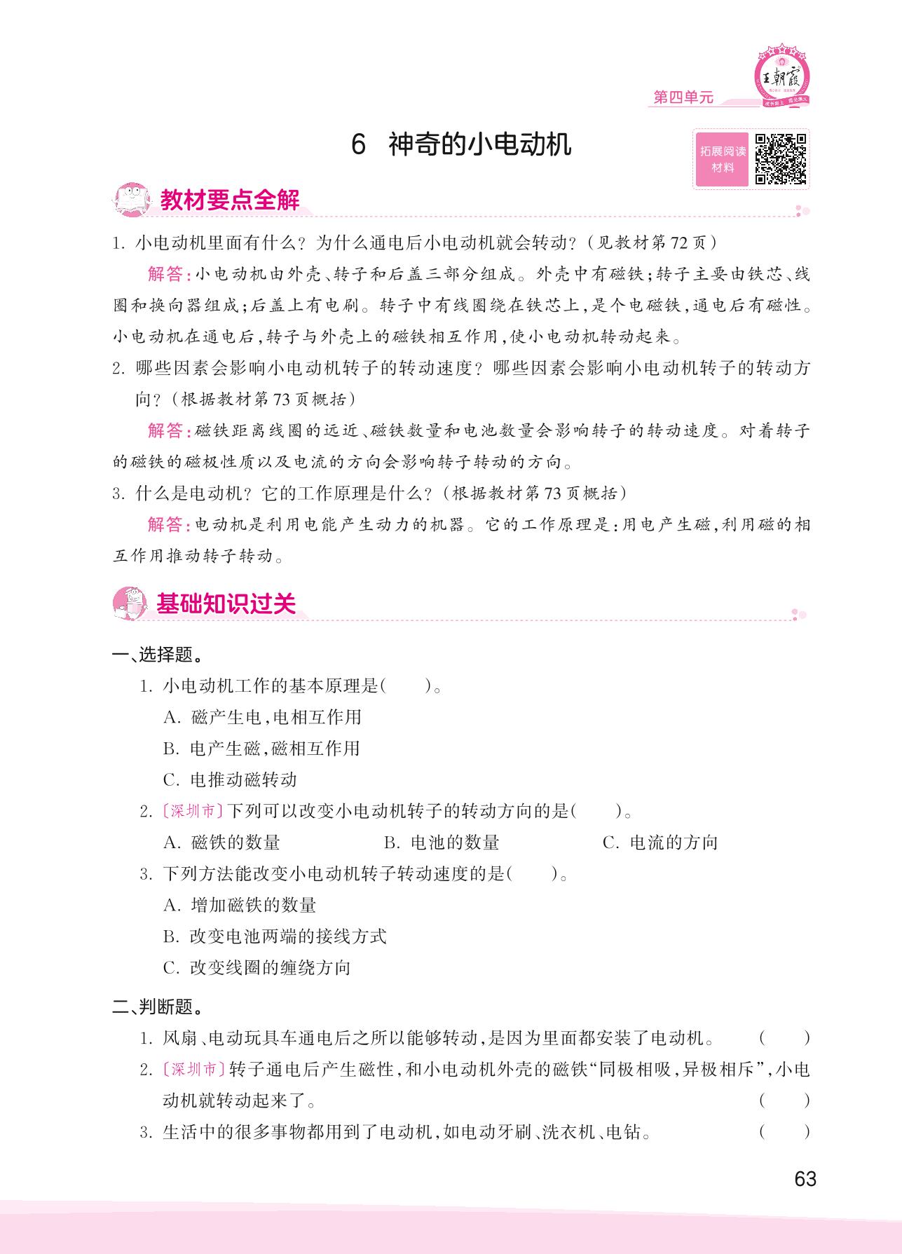 2023上册六年级科学教科版 第四单元 能量——6 神奇的小电动机