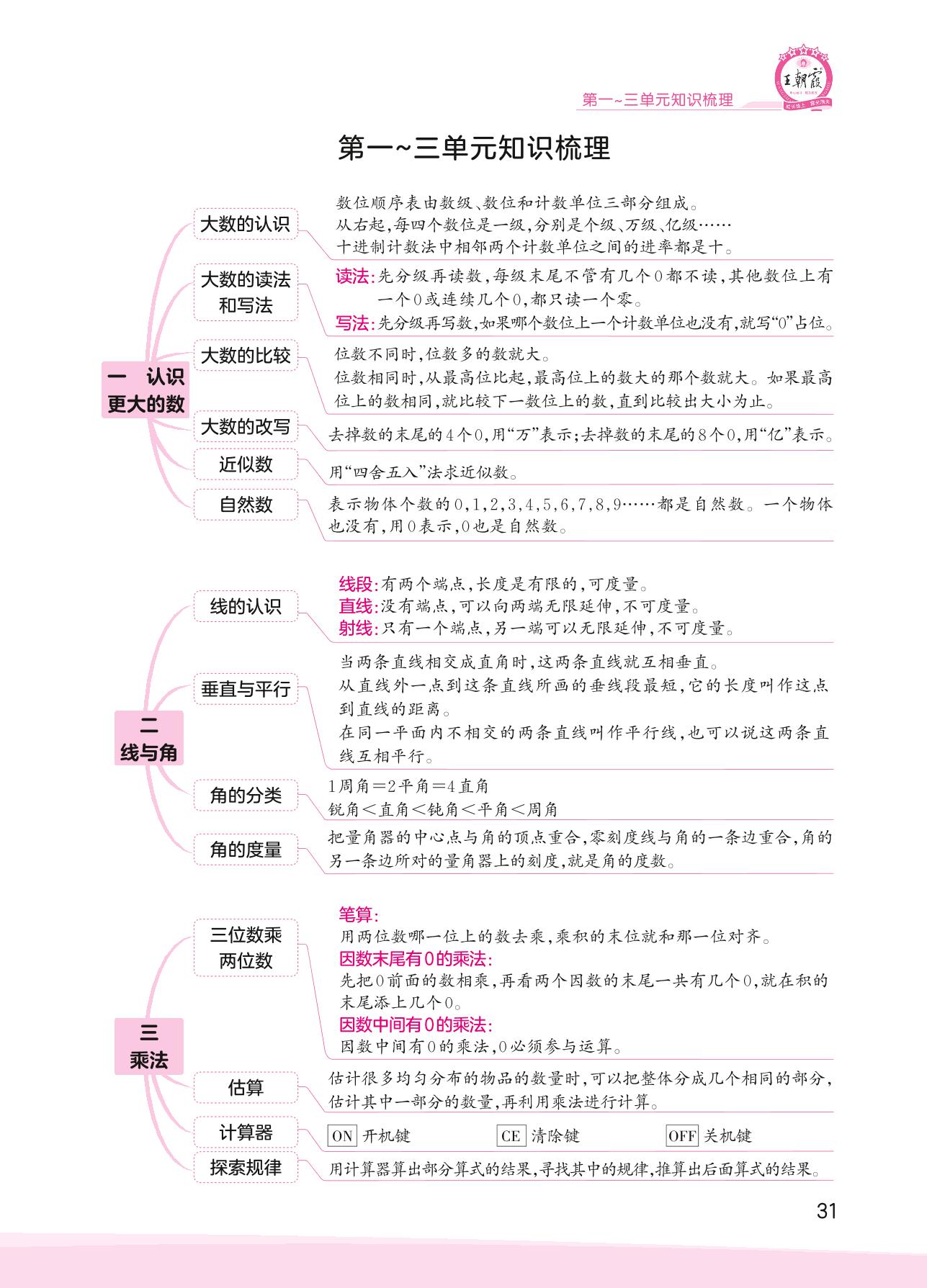 2023上册四年级数学北师版 第一~三单元知识梳理