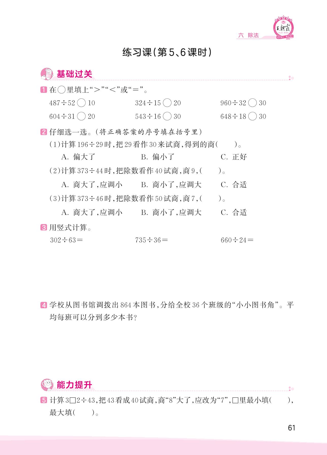 2023上册四年级数学北师版 六 除法——练习课(第5、6课时)