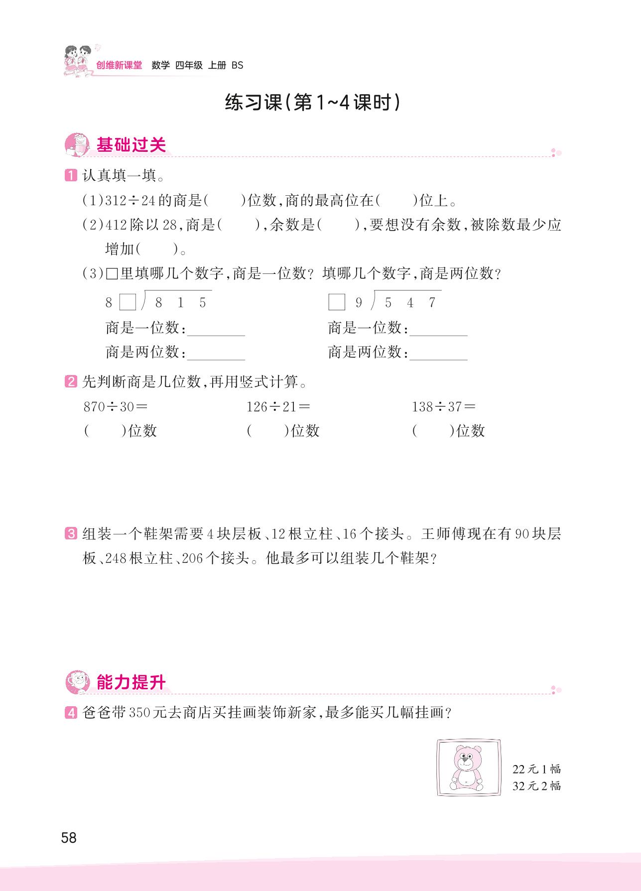 2023上册四年级数学北师版 六 除法——练习课(第1~4课时)