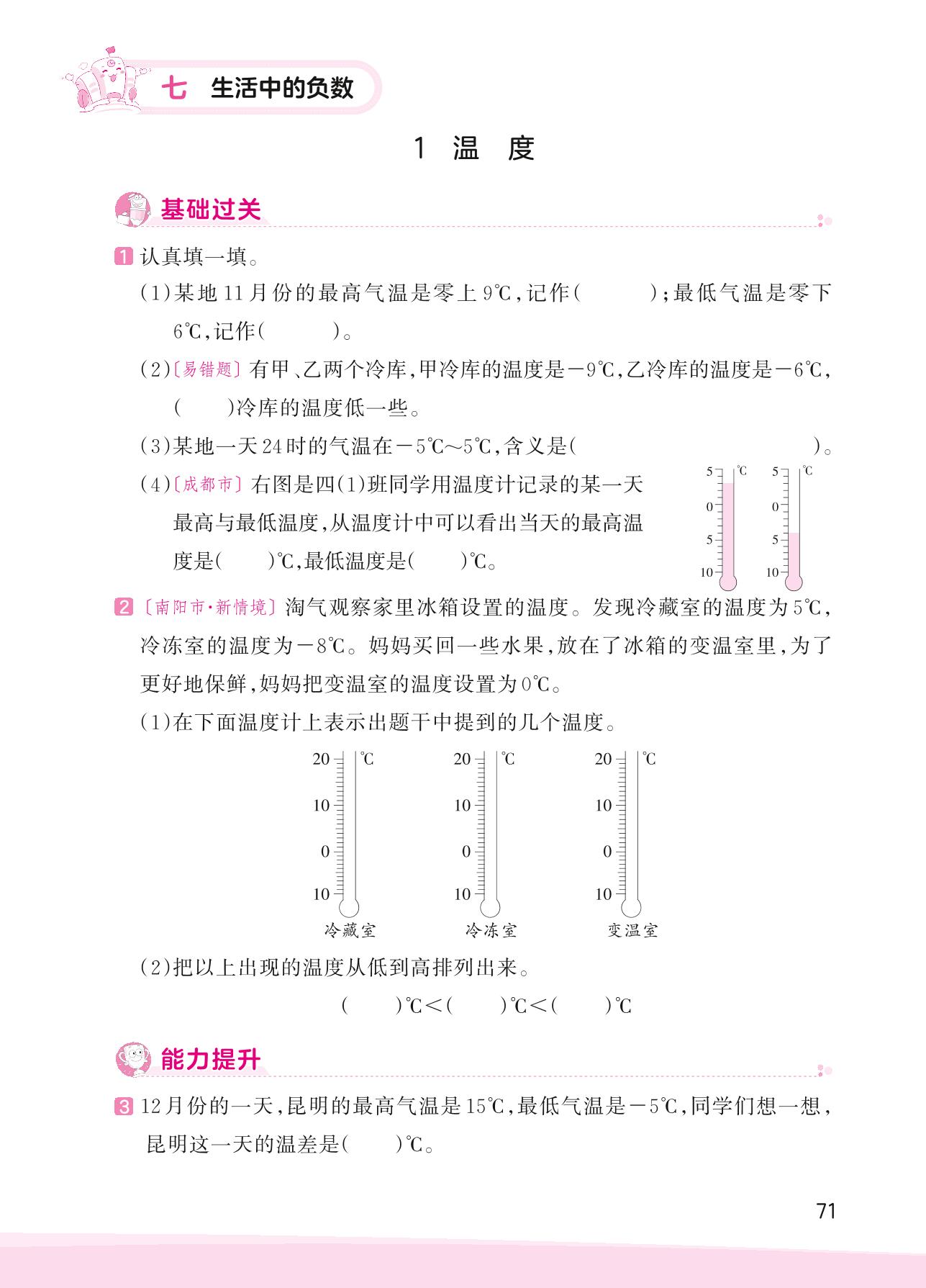 2023上册四年级数学北师版 七 生活中的负数——1 温度