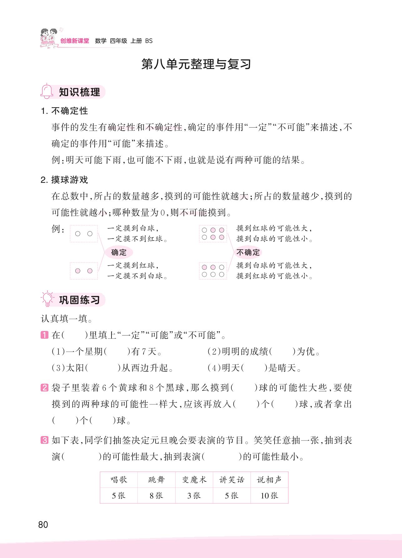 2023上册四年级数学北师版 第八单元整理与复习