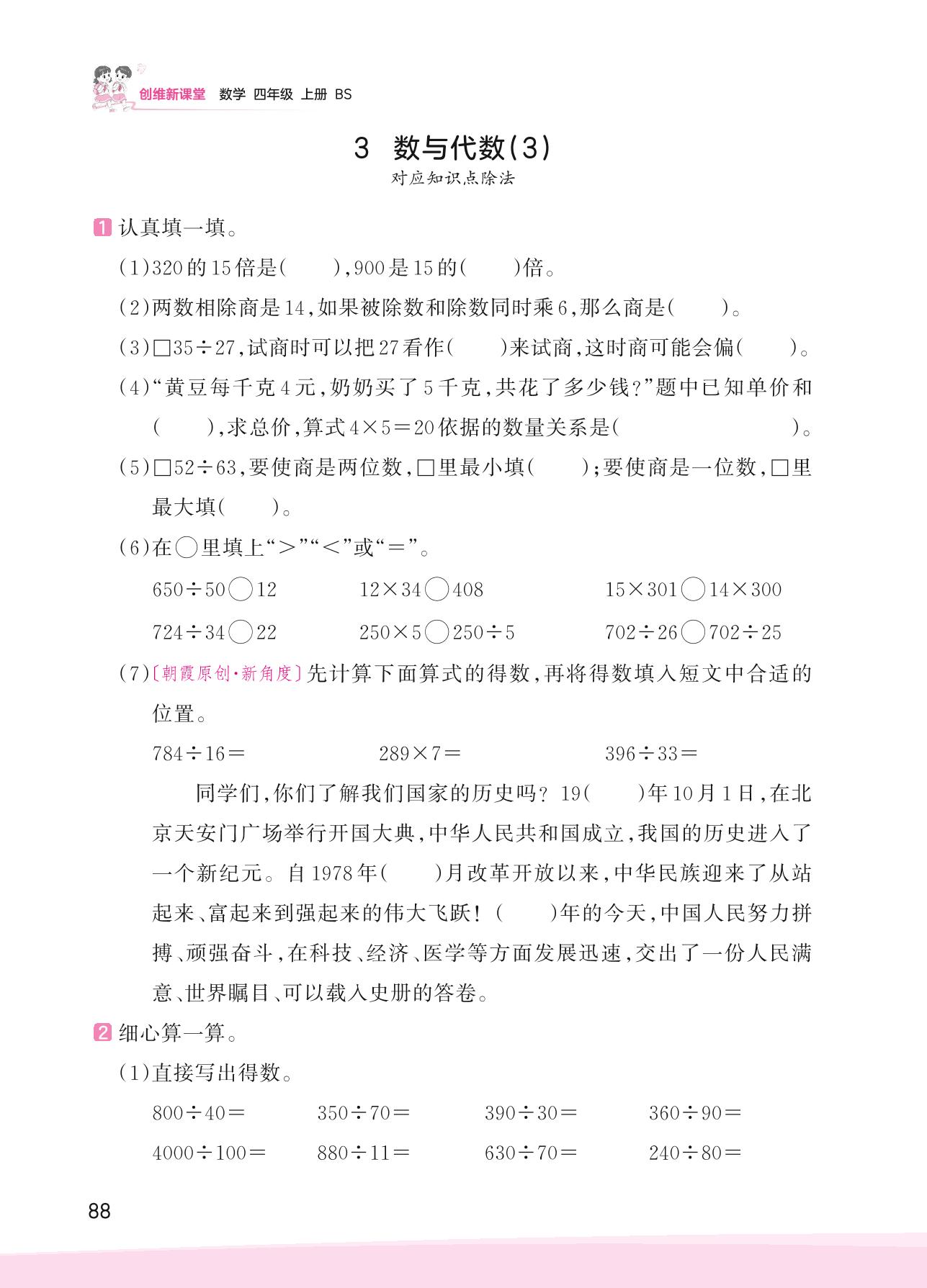2023上册四年级数学北师版 总复习——3 数与代数(3)