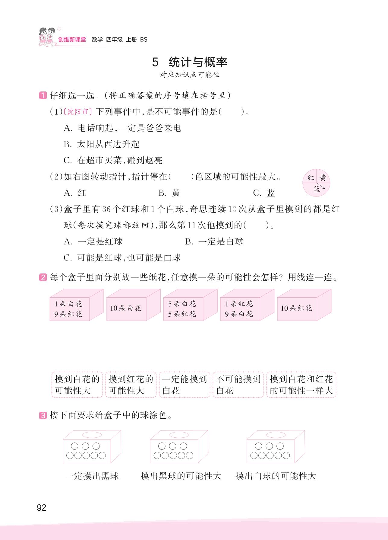 2023上册四年级数学北师版 总复习——5 统计与概率