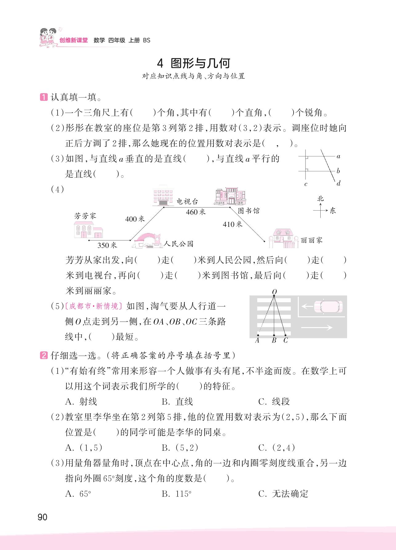 2023上册四年级数学北师版 总复习——4 图形与几何