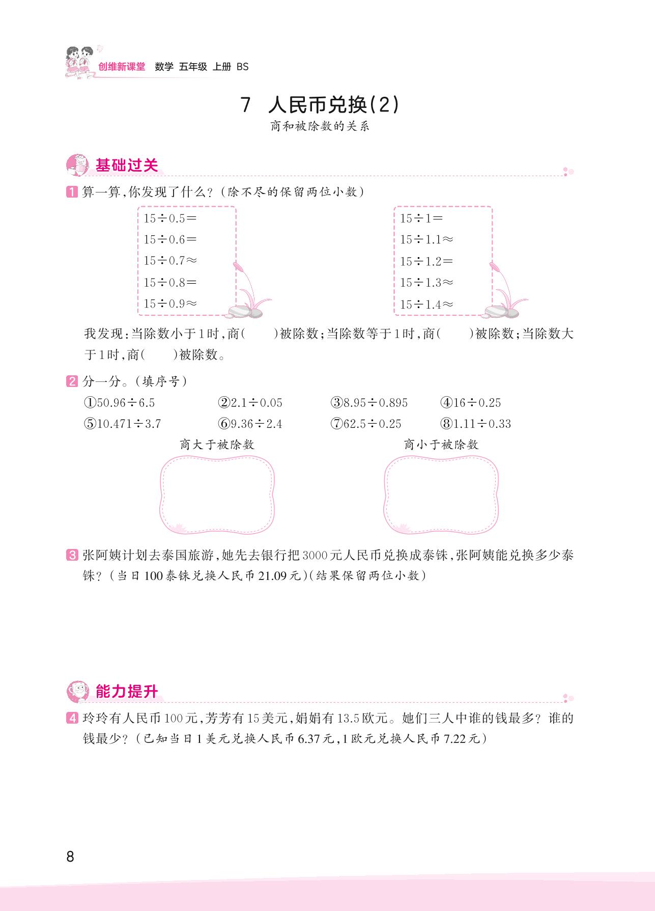 2023上册五年级数学北师版 一 小数除法——7 人民币兑换(2)