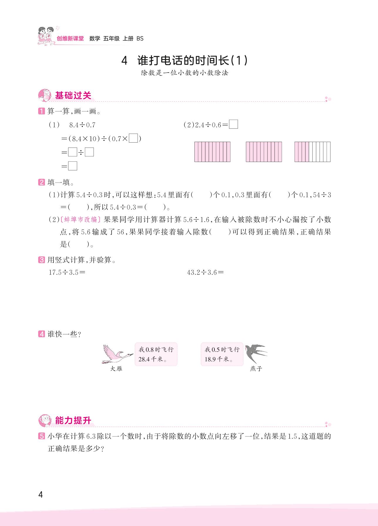 2023上册五年级数学北师版 一 小数除法——4 谁打电话的时间长(1)