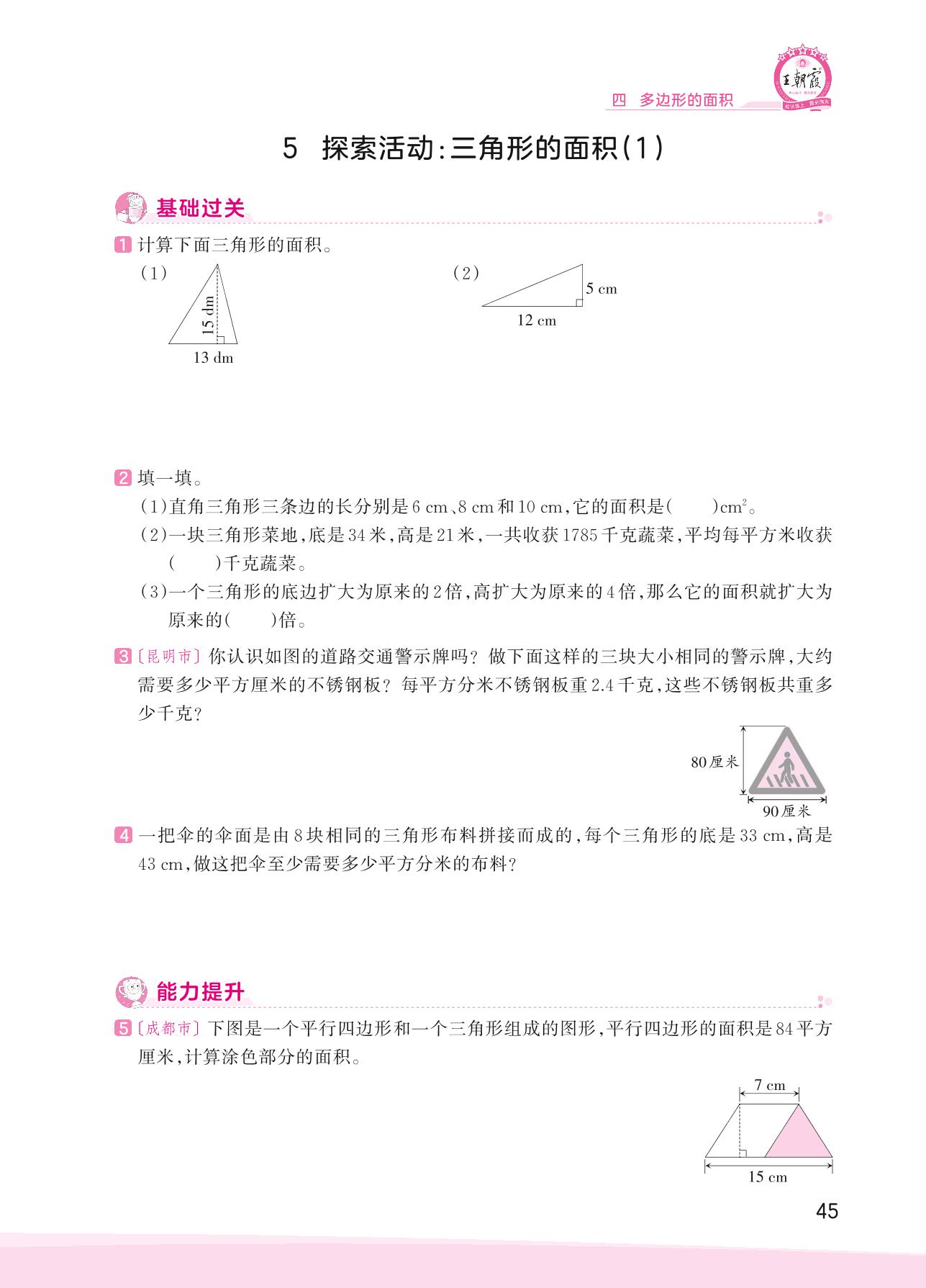 2023上册五年级数学北师版 四 多边形的面积——5 探索活动:三角形的面积(1)