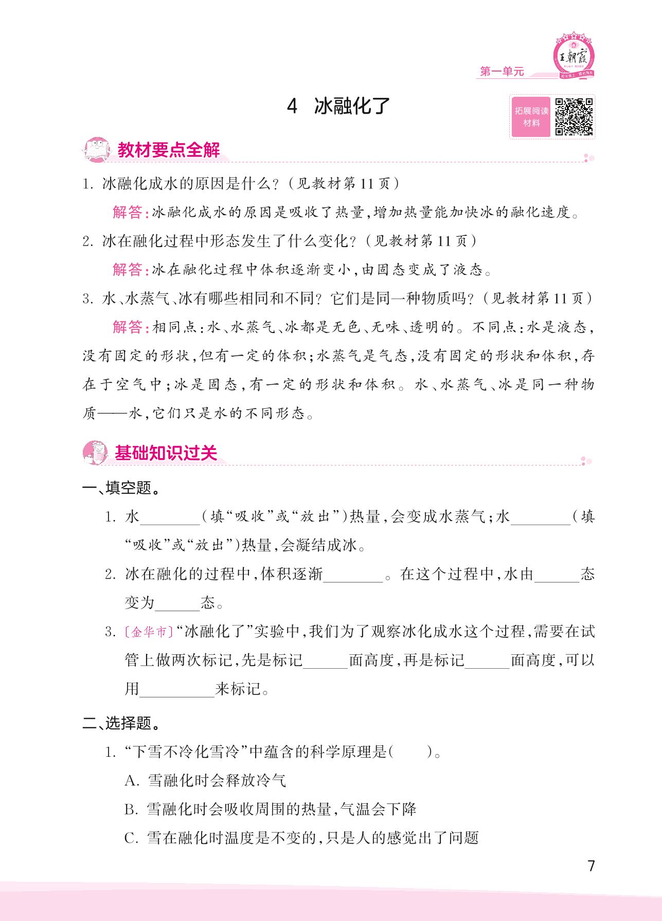 2023上册三年级科学教科版 第一单元 水——4 冰融化了