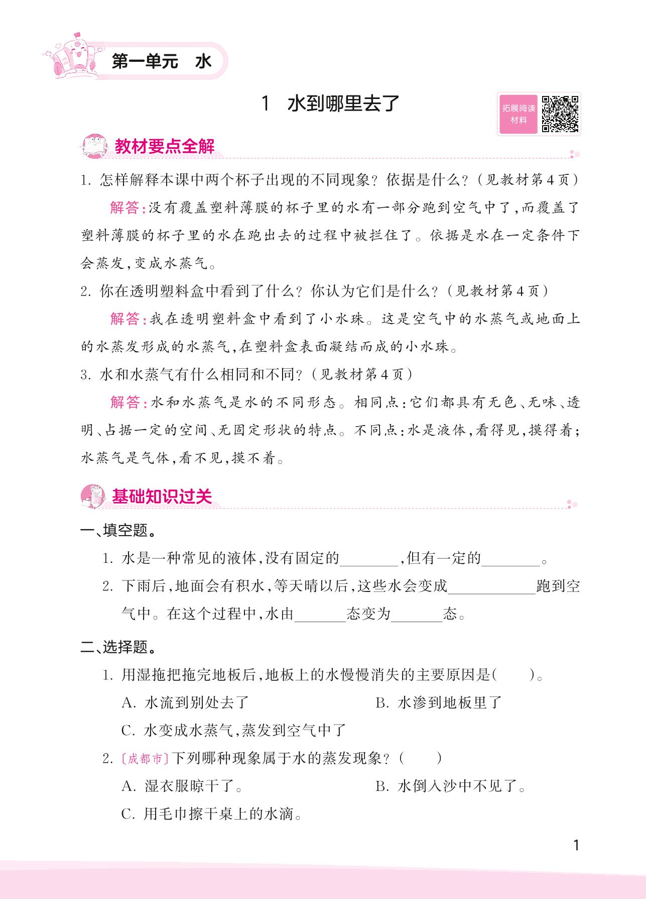 2023上册三年级科学教科版 第一单元 水——1 水到哪里去了