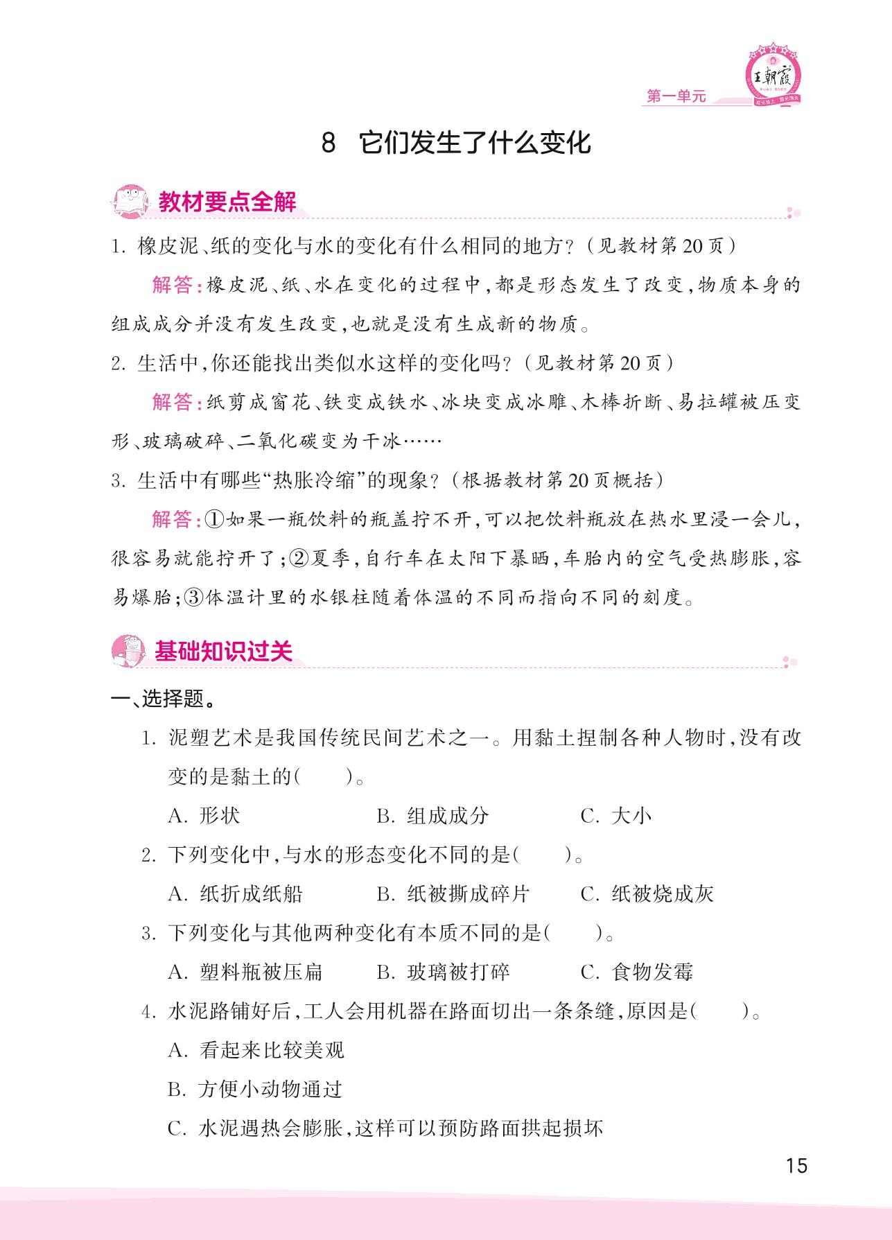2023上册三年级科学教科版 第一单元 水——8 它们发生了什么变化