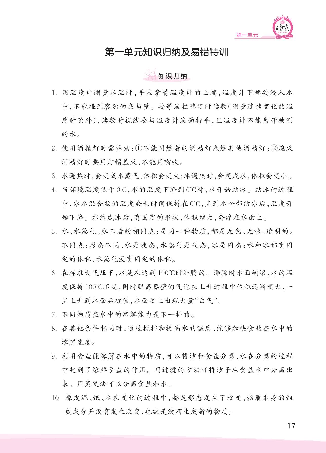 2023上册三年级科学教科版 第一单元知识归纳及易错特训