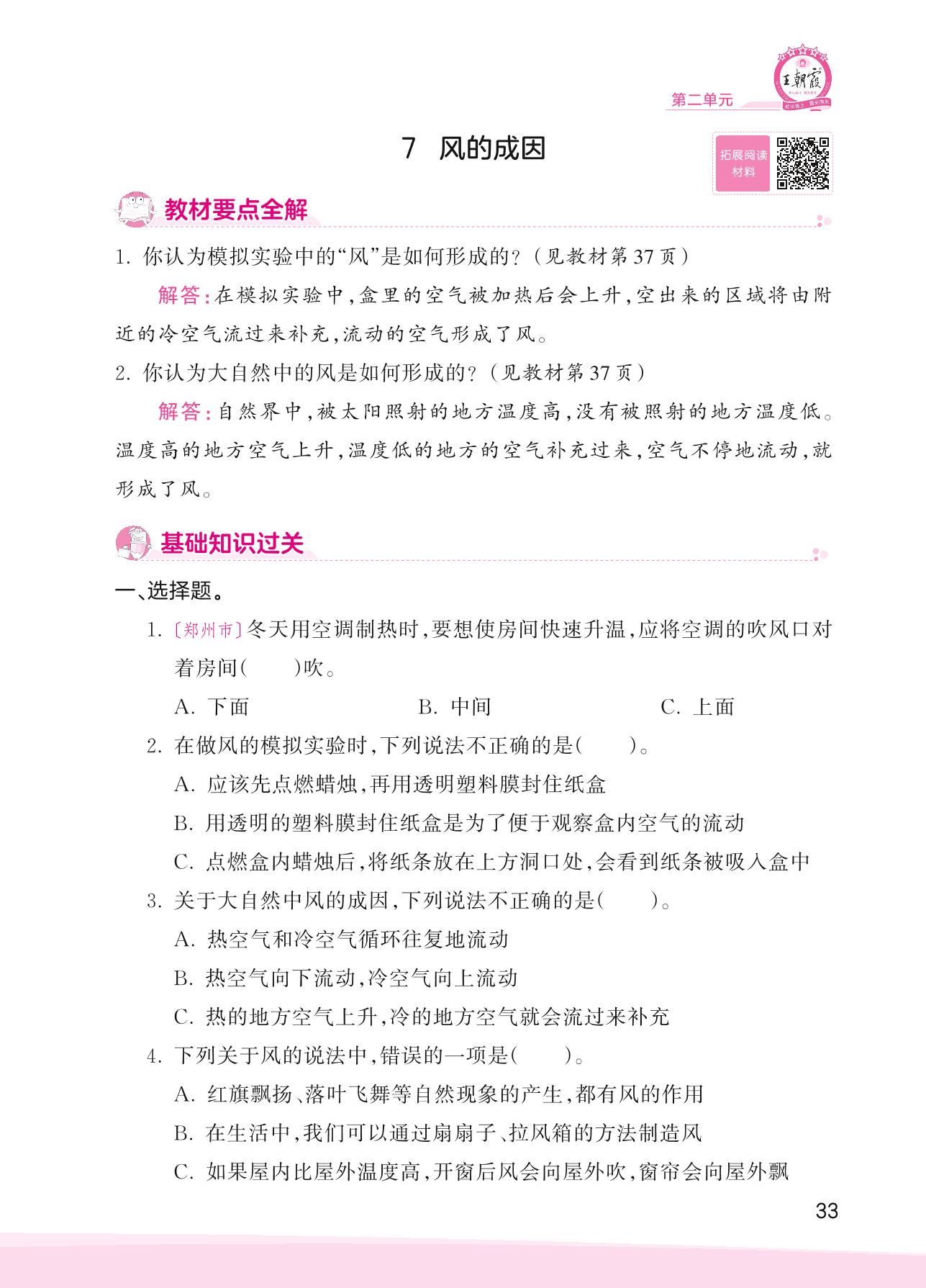2023上册三年级科学教科版 第二单元 空气——7 风的成因