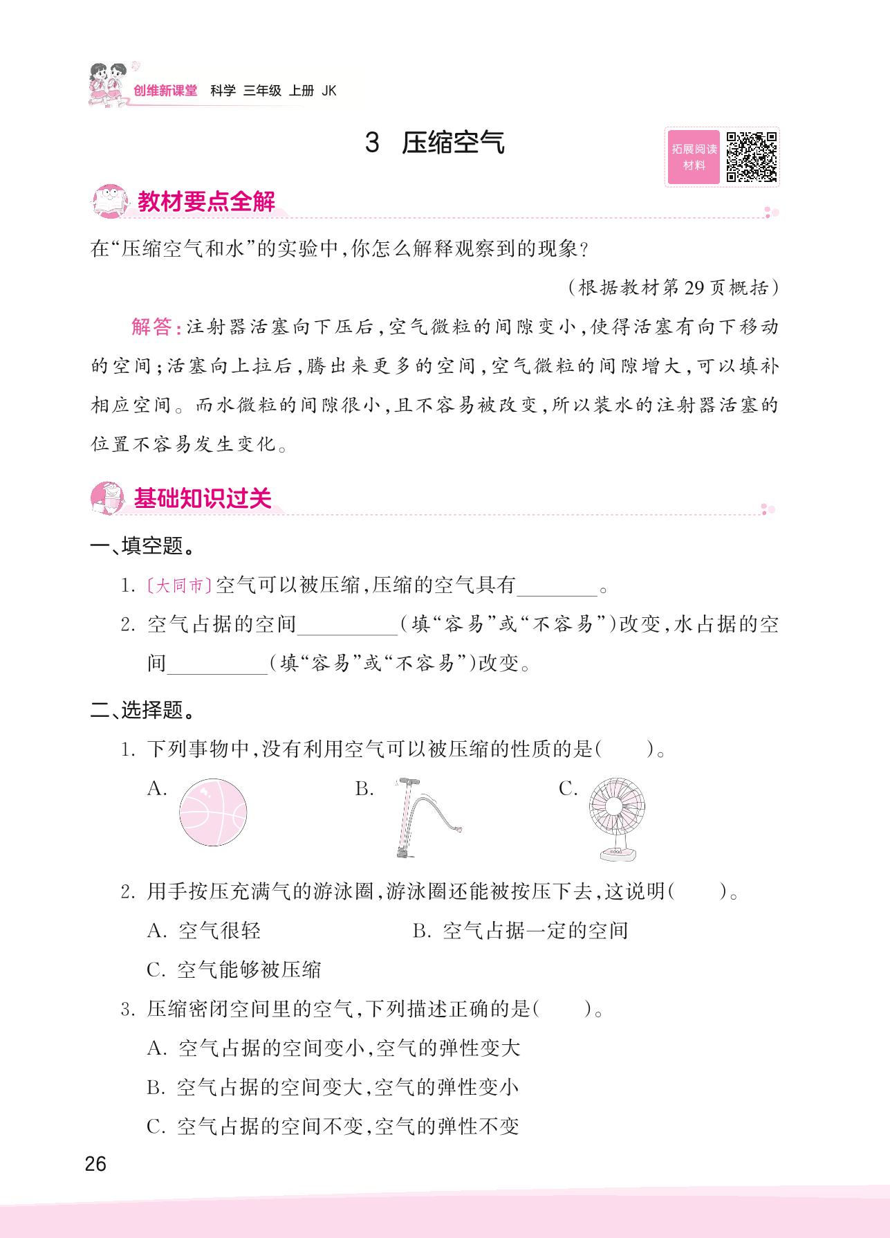 2023上册三年级科学教科版 第二单元 空气——3 压缩空气