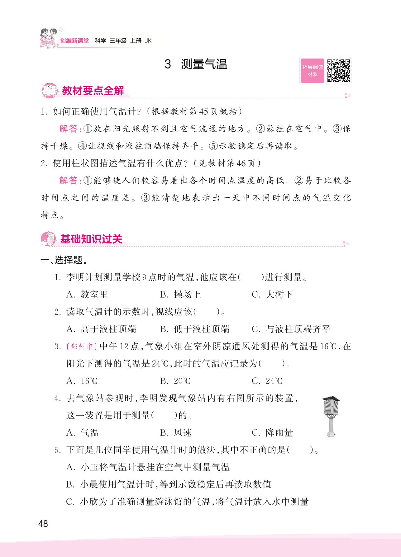 2023上册三年级科学教科版 第三单元 天气——3 测量气温