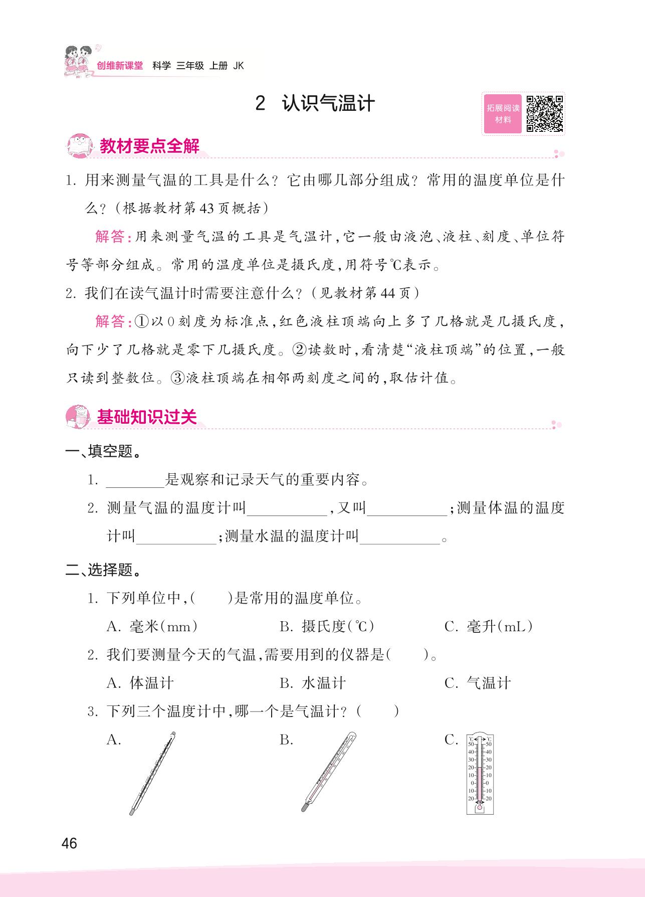 2023上册三年级科学教科版 第三单元 天气——2 认识气温计