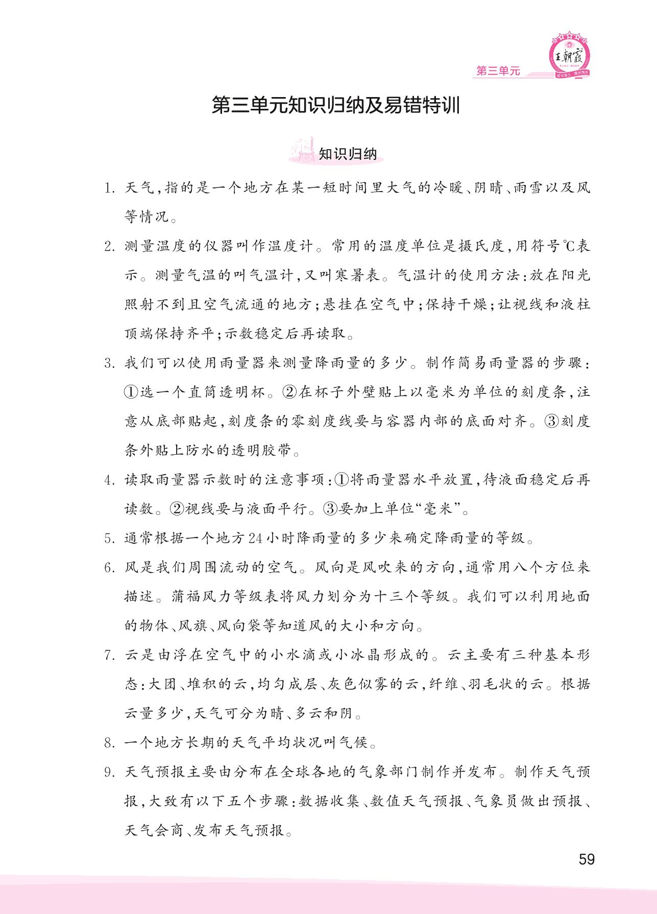 2023上册三年级科学教科版 第三单元知识归纳及易错特训