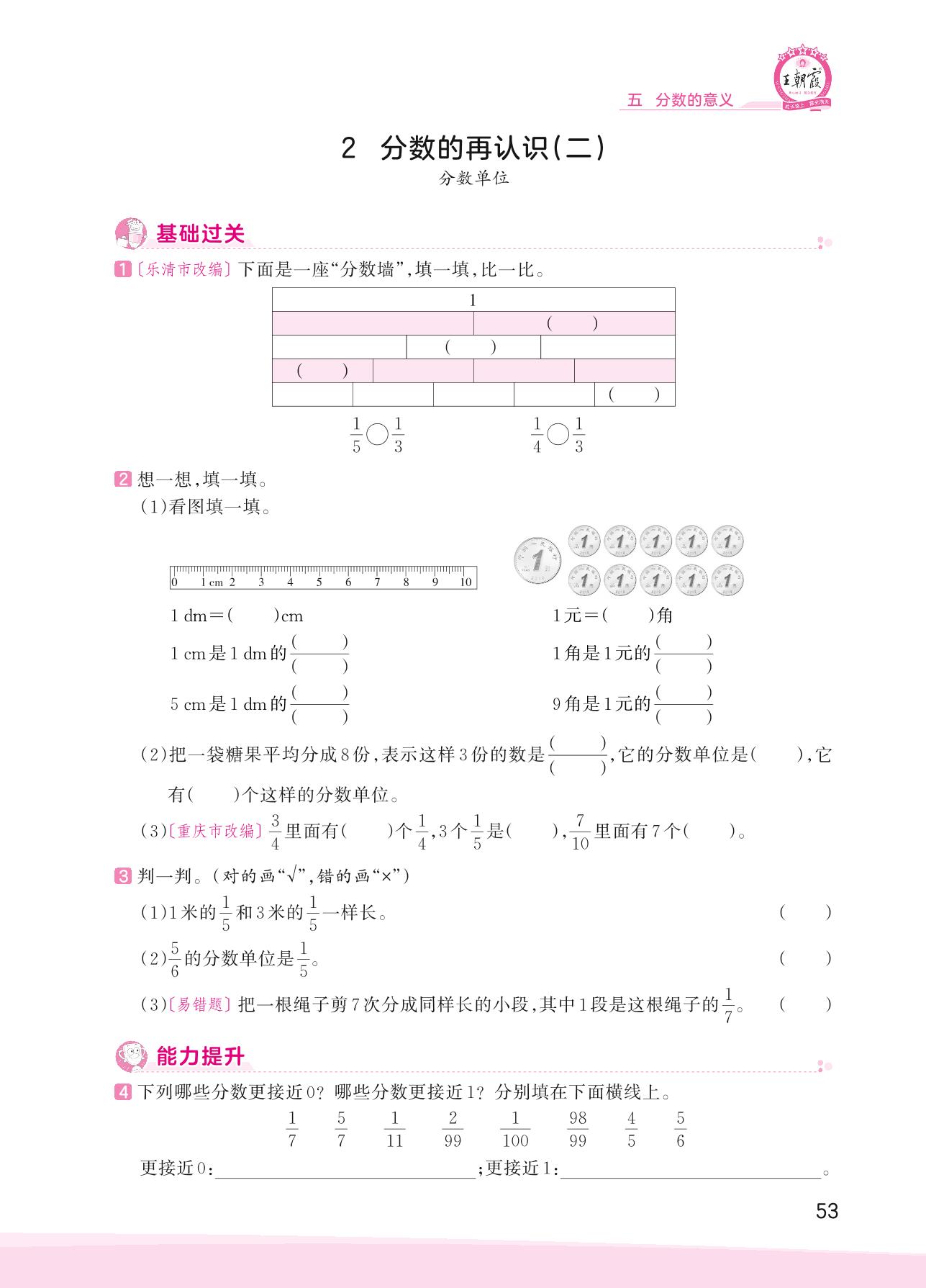 2023上册五年级数学北师版 五 分数的意义——2 分数的再认识(二)