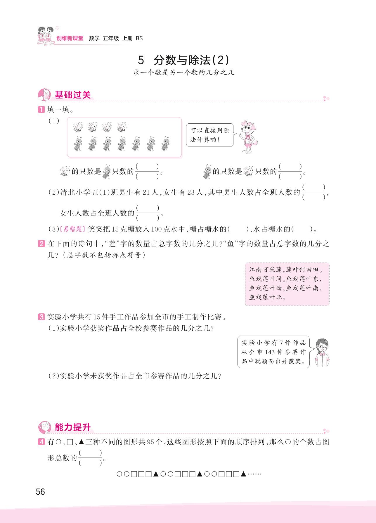 2023上册五年级数学北师版 五 分数的意义——5 分数与除法(2)