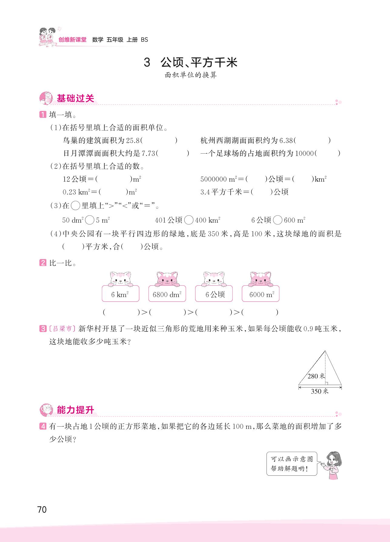 2023上册五年级数学北师版 六 组合图形的面积——3 公顷、平方千米