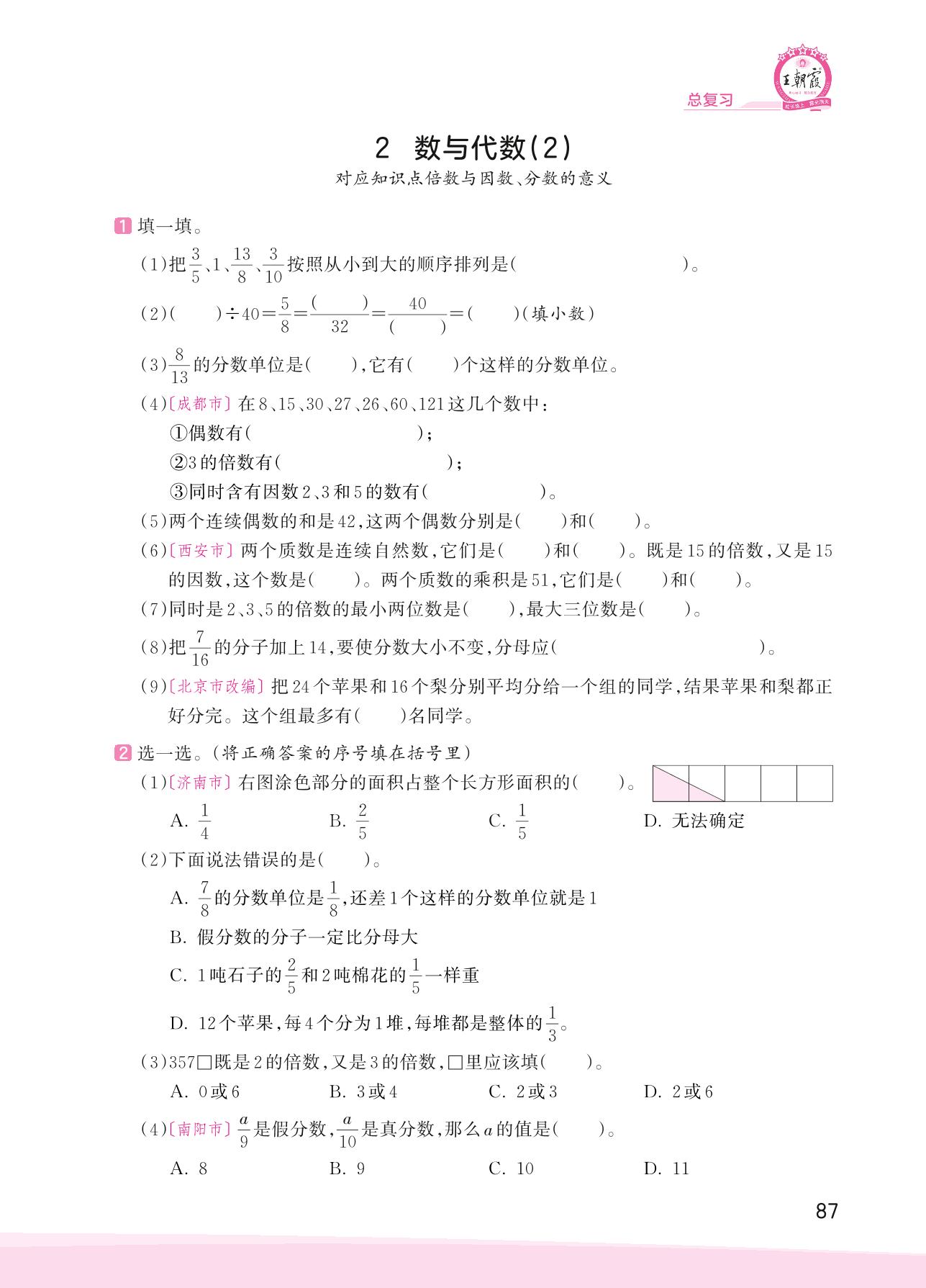 2023上册五年级数学北师版 总复习——2 数与代数(2)