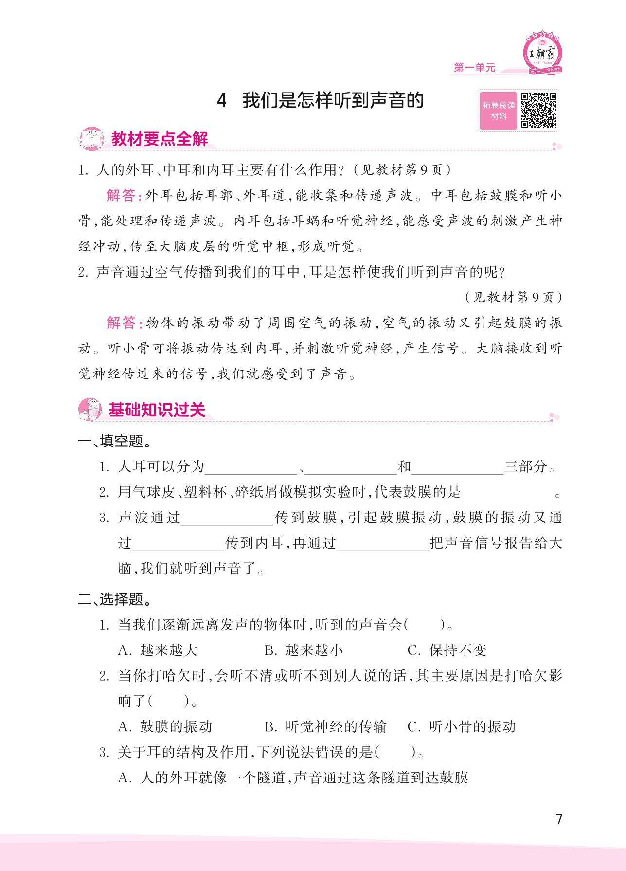 2023上册四年级科学教科版 第一单元 声音——4 我们是怎样听到声音的