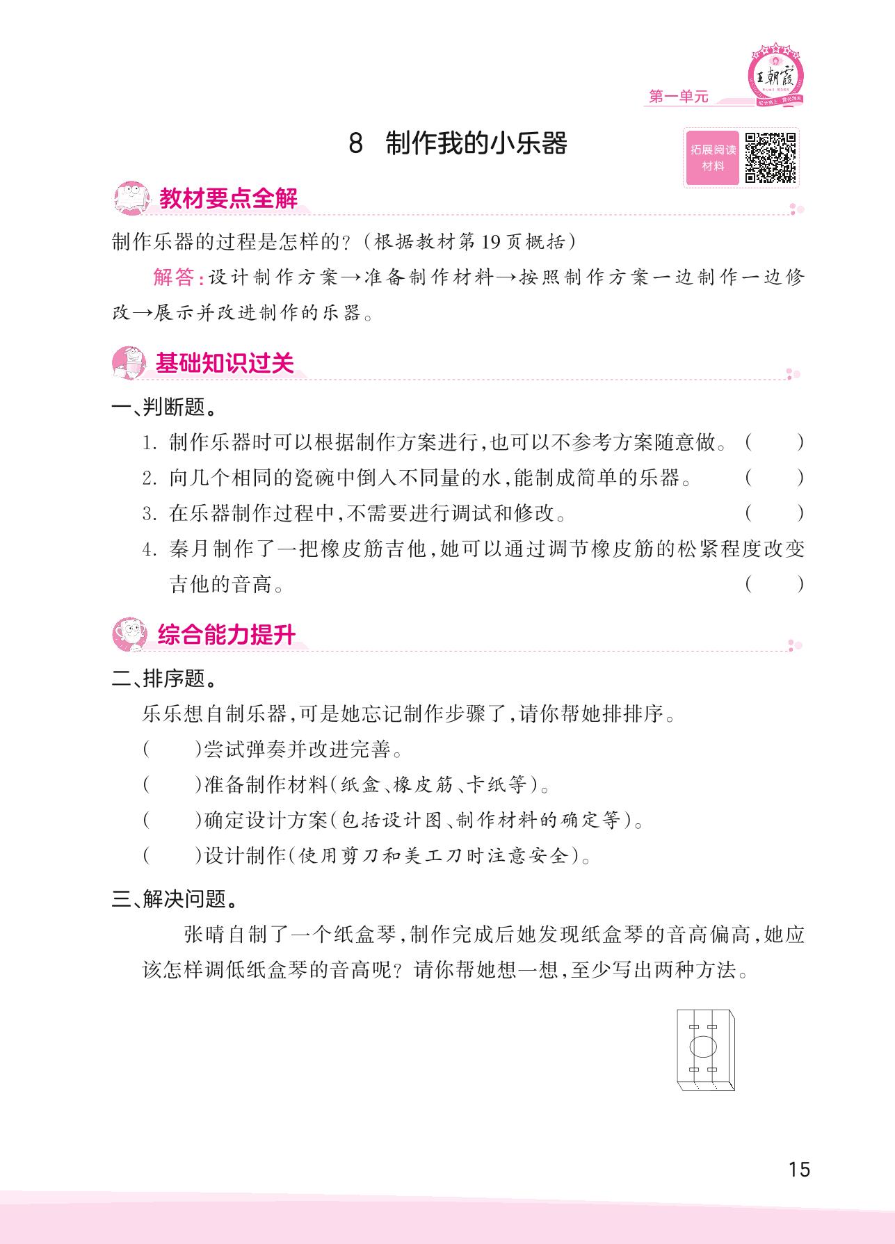 2023上册四年级科学教科版 第一单元 声音——8 制作我的小乐器