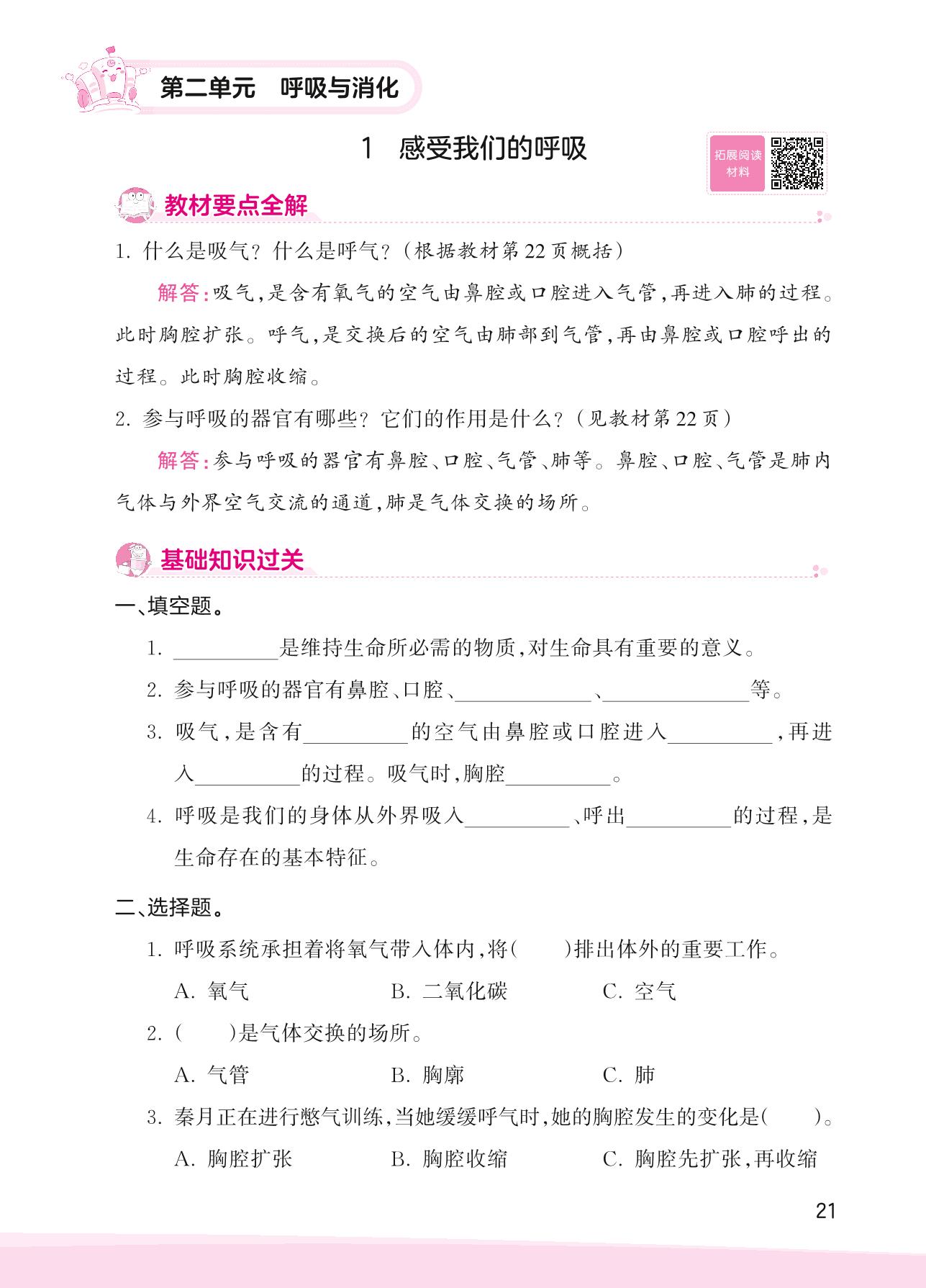2023上册四年级科学教科版 第二单元 呼吸与消化——1 感受我们的呼吸